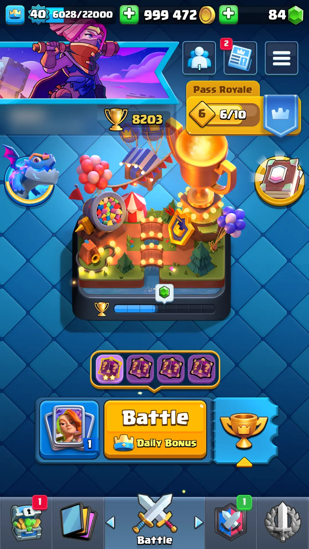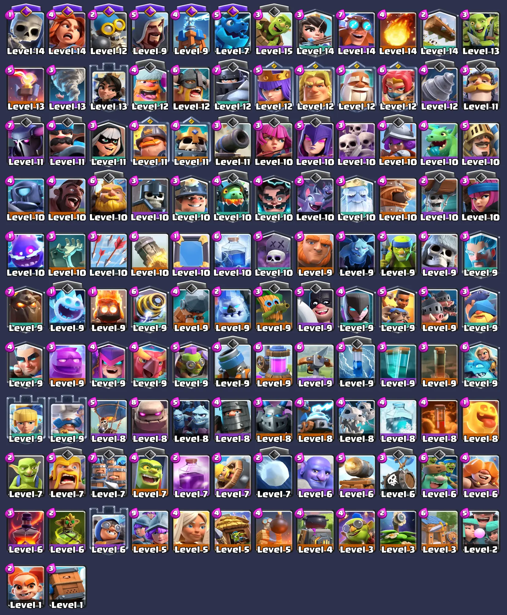 6 CHAMPIONS 🚀 8203 TROPHIES 🔥 13 KING TOWER 🔥 40 LVL 💎 122 CARDS 👑 1 MAX CARDS 🔥 38 EMOTE 👑 6 EVO CARDS 🔥 ANDROID & IOS 👑 INSTANT DELIVERY