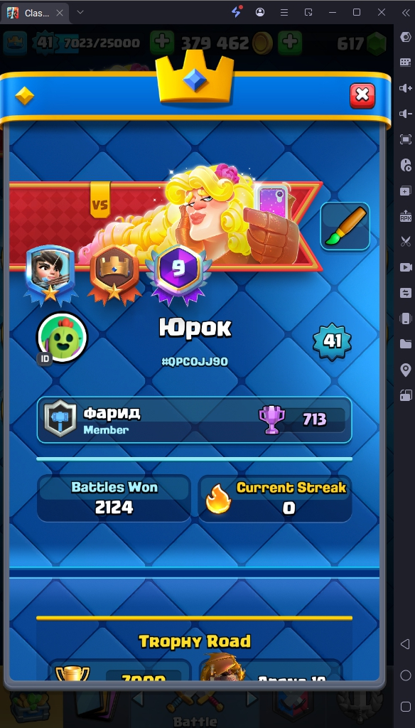 7000 TROPHY 🏆 41 LVL 💯 KT 13 👑 115 CARDS ♦️ 6 MAX CARDS 👑 1 ELITE CARDS 🔮 1 EVO 💯 EMOTE 26 🎭 #QPC0JJ90 ⸱ TAG ACCOUNT ♥️