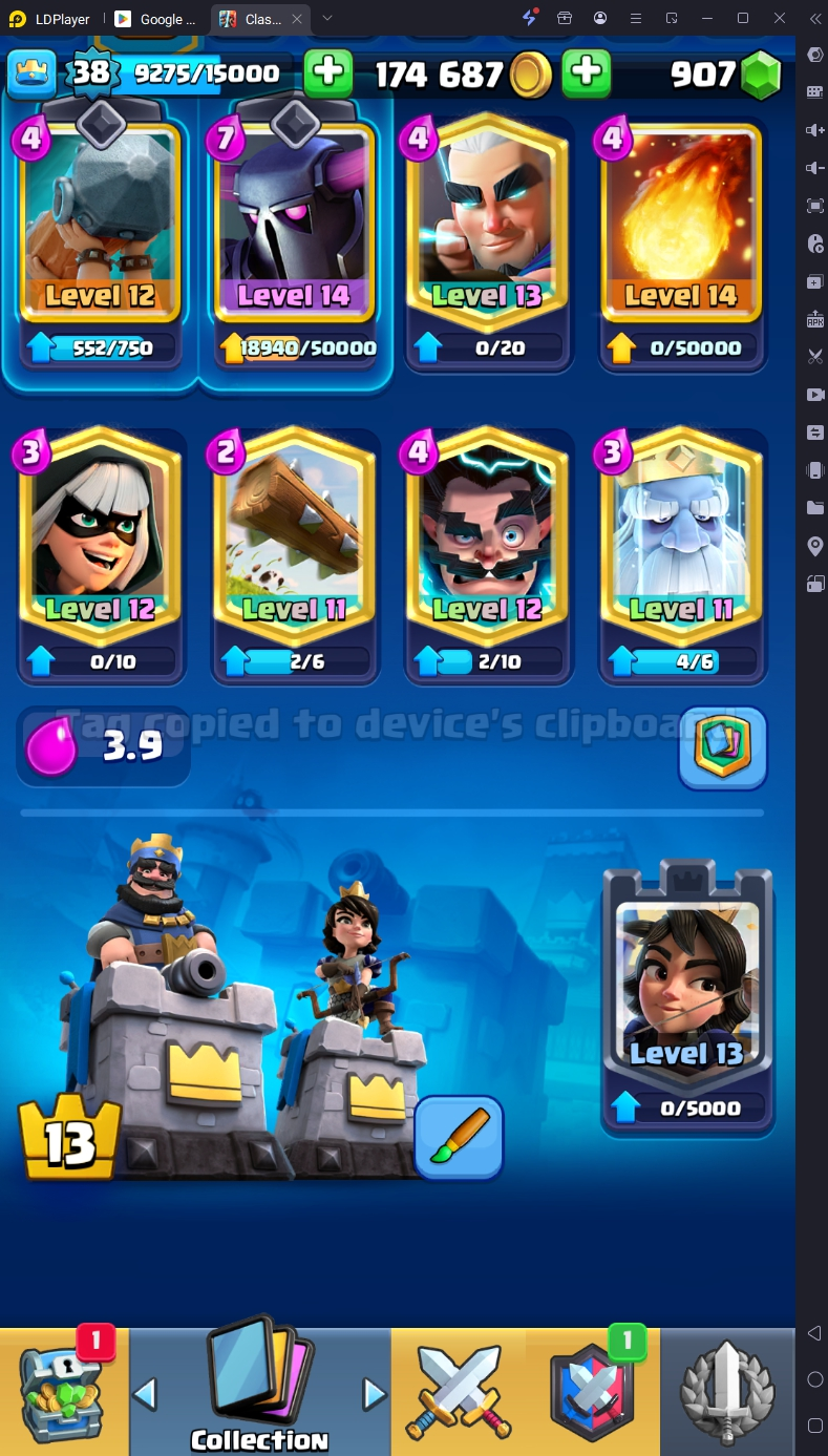 7595 TROPHY 🏆 38 LVL 💯 KT 13 👑 116 CARDS ♦️ 2 MAX CARDS 👑 0 ELITE CARDS 🔮 5 EVO 💯 EMOTE 28 🎭 #JP9UPQC9J ⸱ TAG ACCOUNT ♥️