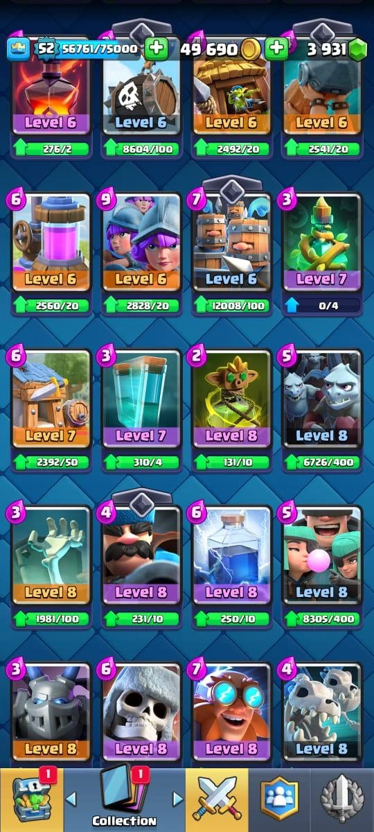 9009 Trophies | XP Lvl 52❗️| 24 MAXED CARDS❗️| 5 ELITE LEVEL CARD ❤️🔥| 14 EVOLUTIONS📈 | 78 EMOTES | 100% safe account | instant delivery