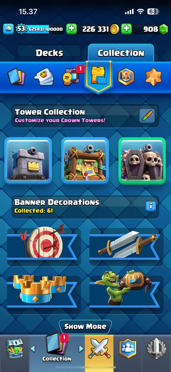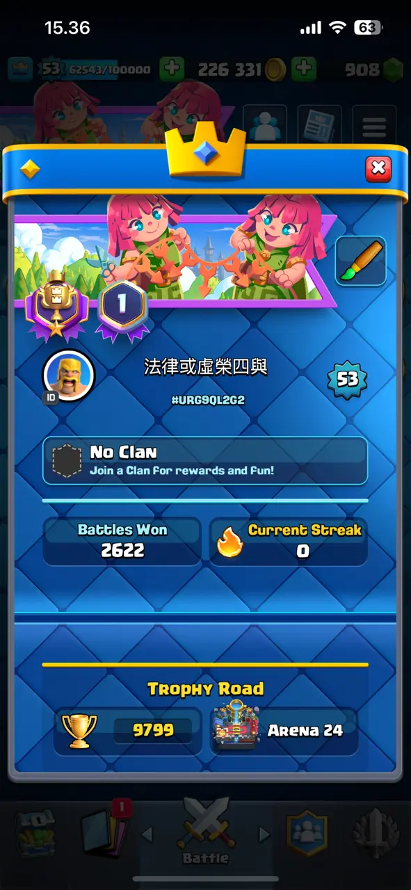 🔥 [CHEAPEST] 🔥 CR Lv.53 🔥 Change Name ON 🔥 Arena 24 🔥 9799 Trophies 🔥 KT 14 🔥 9 Evo Cards 🔥 10 Max Cards & 8 Elite 🔥 51 Emotes 🔥 3 Tower Skins 🔥 Full Acces & Guaranteed 🔥 [F2314] 🔥
