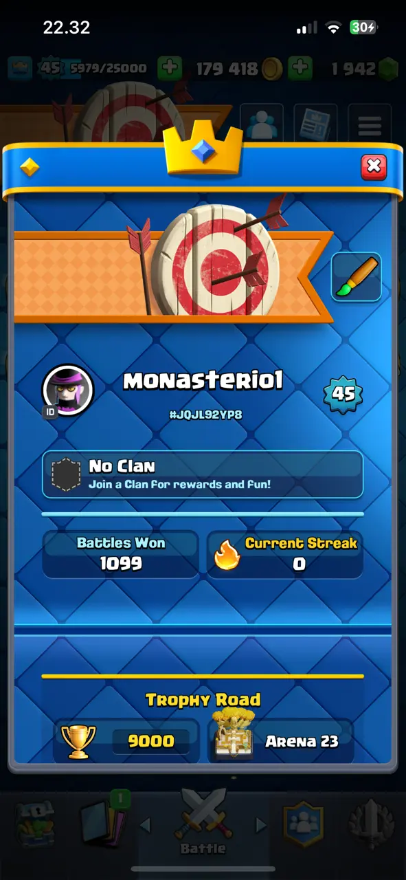 🔥 Combo CR+COC TH 14 🔥 CR Lv.45 🔥 Change Name ON 🔥 Arena 23 🔥 9000 Trophies 🔥 KT 14 🔥 5 Evo Cards 🔥 8 Max Cards & 2 Elites 🔥 39 Emotes 🔥 8 Tower Skins 🔥 [F2741] 🔥