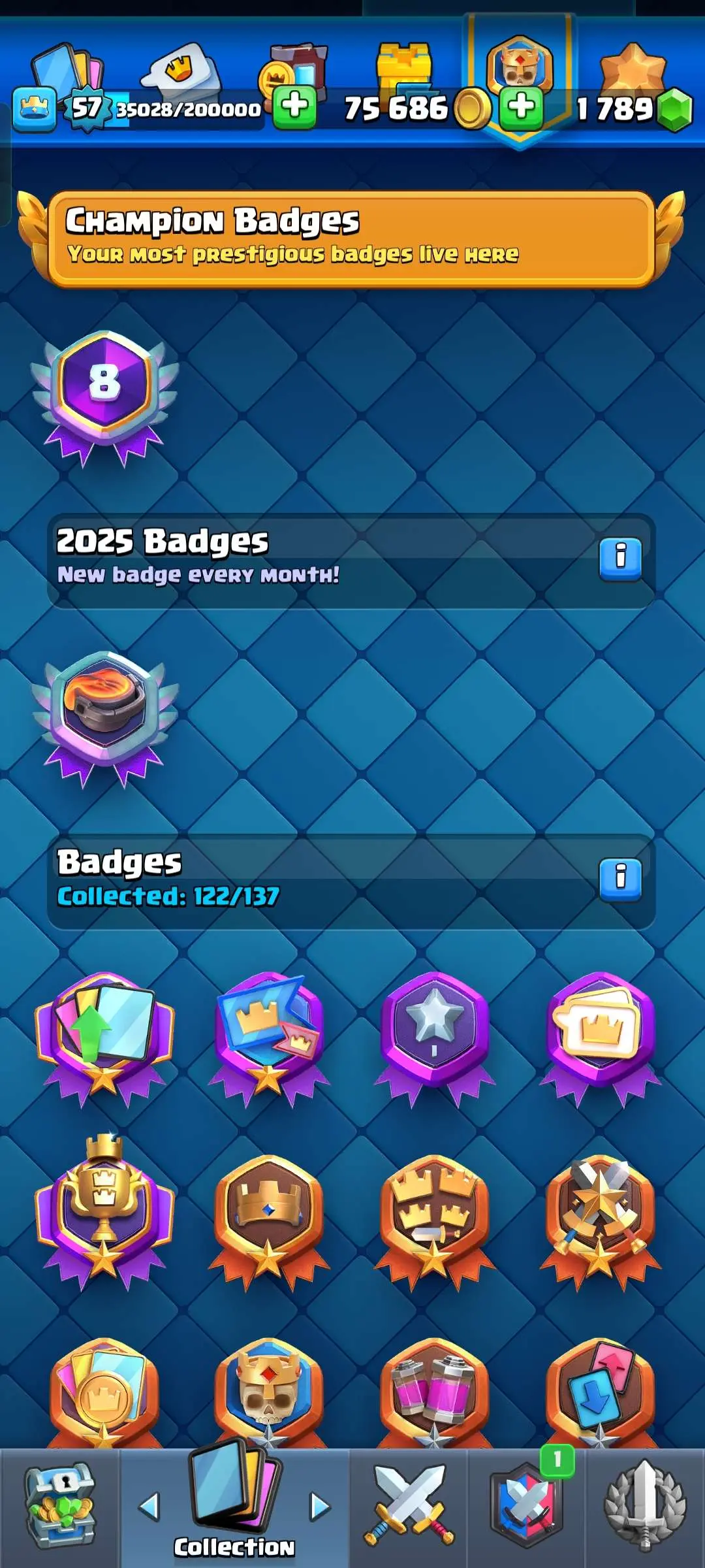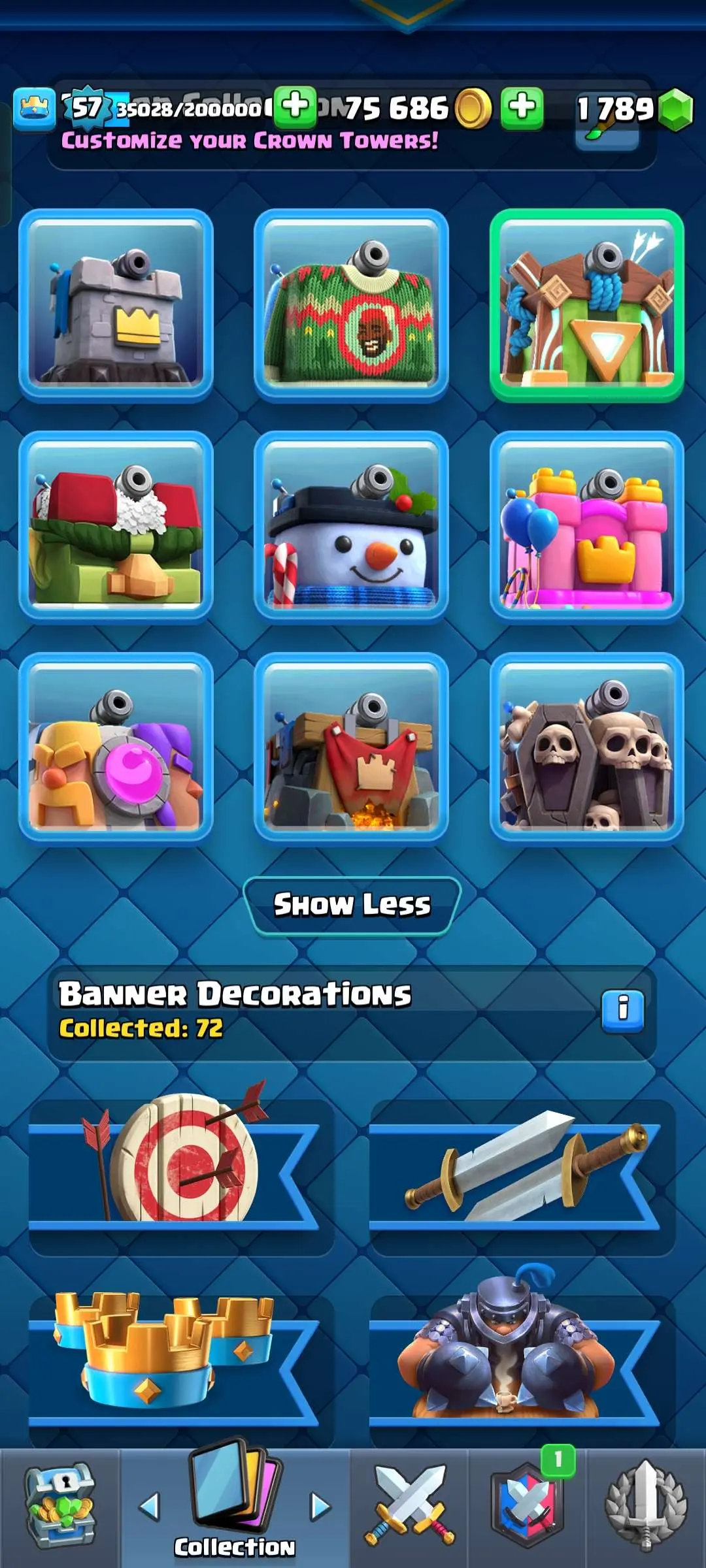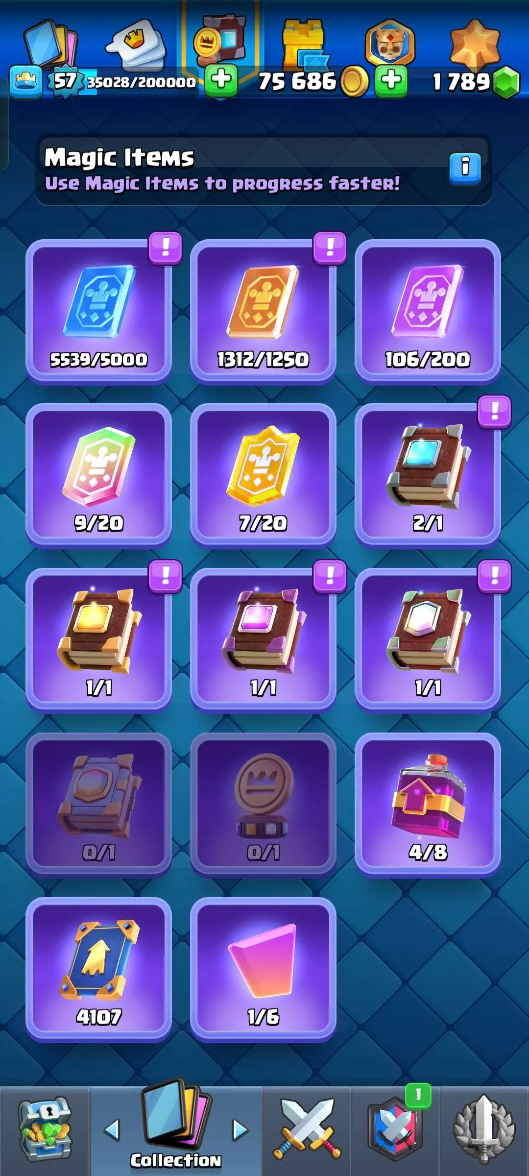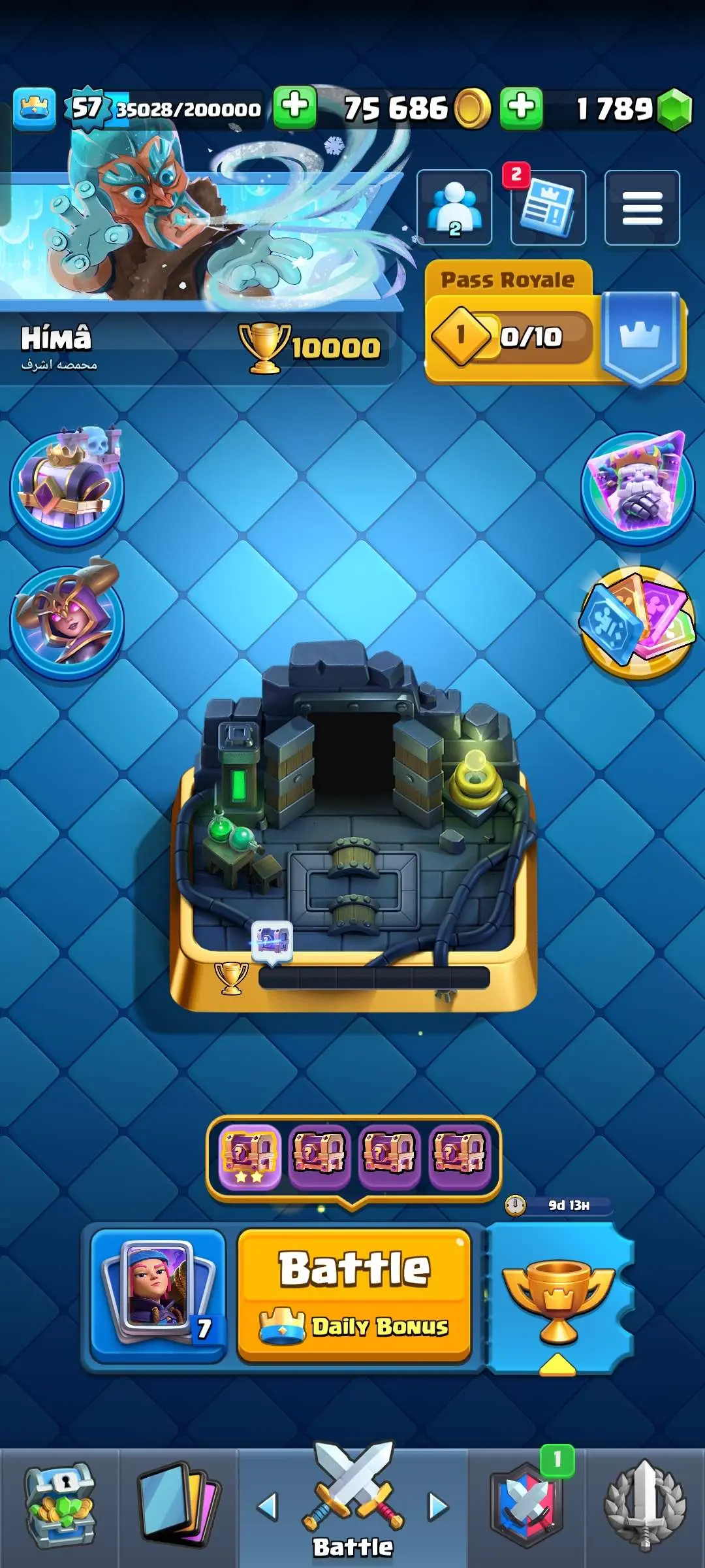 CR Lvl 57 ✨ 10000 Trophy ✨ KT 15 ✨ 11 Elite Cards ✨ 40 Max Cards ✨ 8 Evo Cards ✨ 92 Emotes ✨ 8 Tower skins
