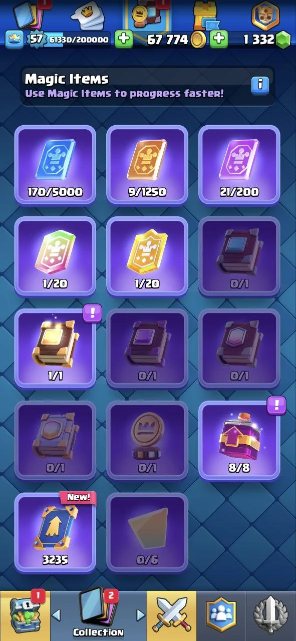 EMPEROR KING✨ KT 15 🔱 LVL 57 🏆 CUPS[9000] ✨ MAX CARDS [66] ✨ ELITE [9] ✨ EVO [4] ✨ LVL 14 [57] ✨ EMOTES [67] 🔱 CARDS [117] ✨ 10000% SAFE