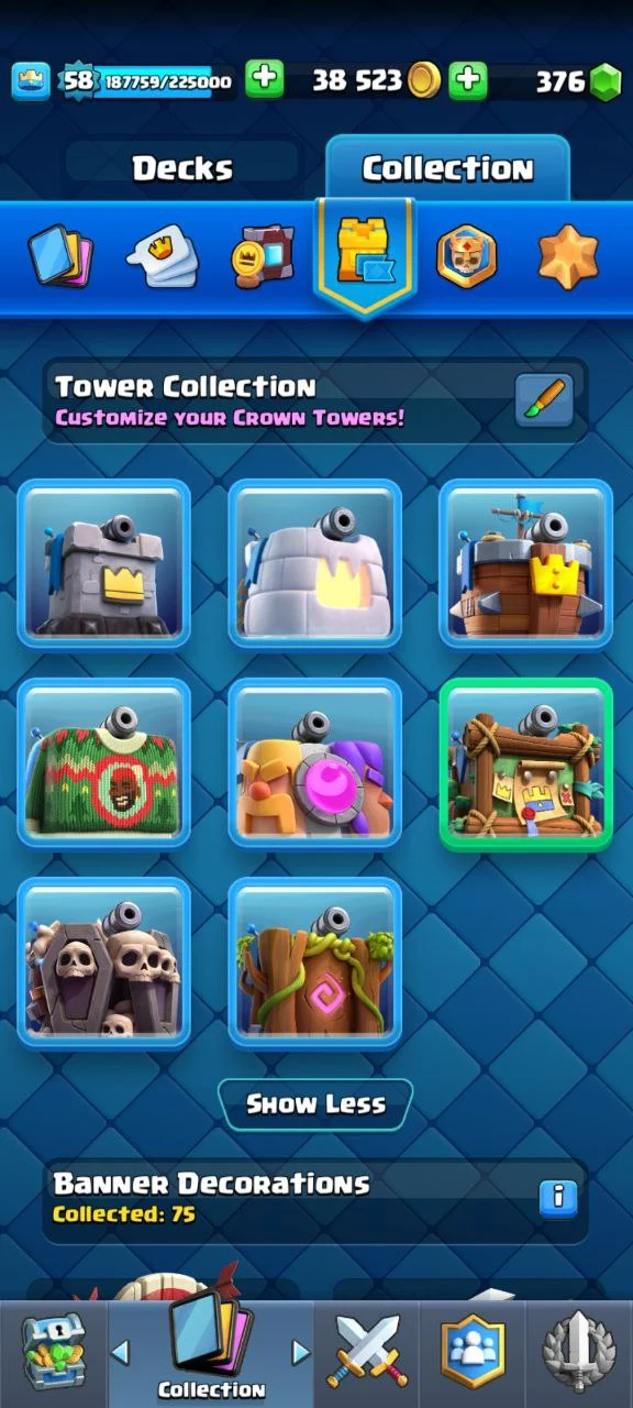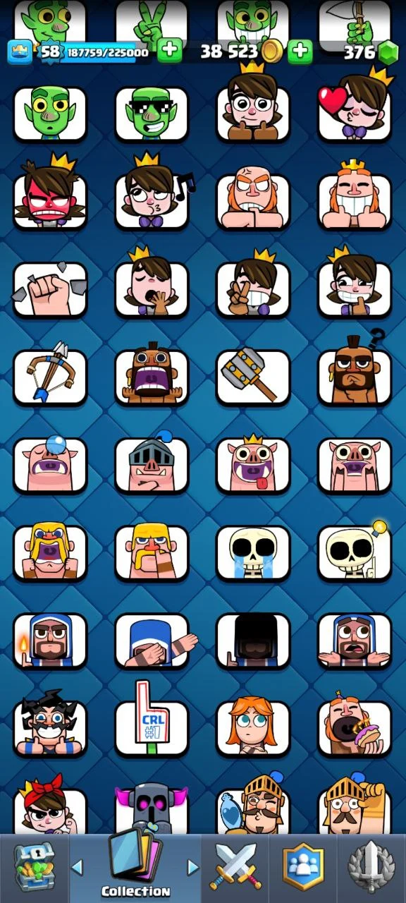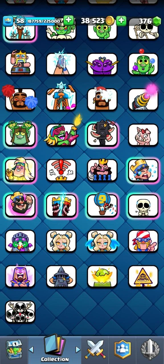 💎 FULLY STACKED WITH RARE EMOTES 👑 GRASS CHEWING RAM 😈 YEAR 2020 SPECTACLE BOMBER 🏹 CANON GIANT 🤯 7x TOWER SKINS 🌟 EMPEROR KING 🏅 GOBLIN EMOTES 💰 GOBLIN EMOTES 👑 MUSKETEER EMOTES ✨️ CANON GIANT ☠️