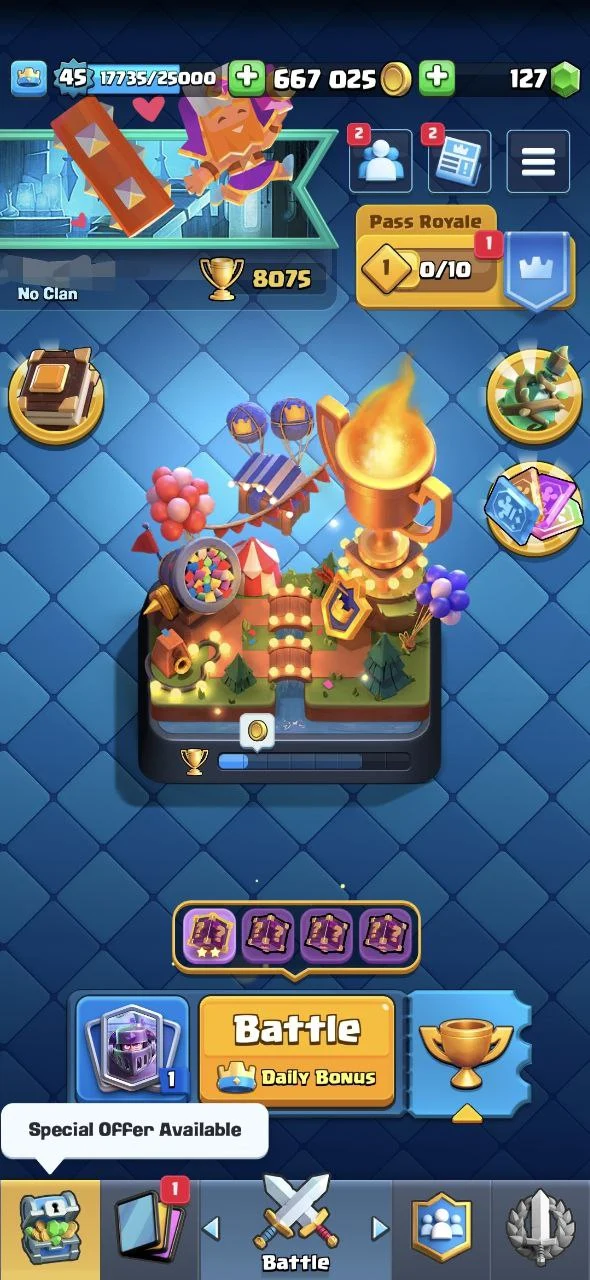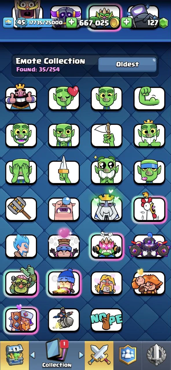 ✨ KT 14 🔱 LVL 45 🏆 CUPS[8075] ✨ MAX CARDS [9] ✨ ELITE [2] ✨ EVO [5] ✨ LVL 14 [7] ✨ EMOTES [35] 🔱 CARDS [118] ✨ 10000% SAFE