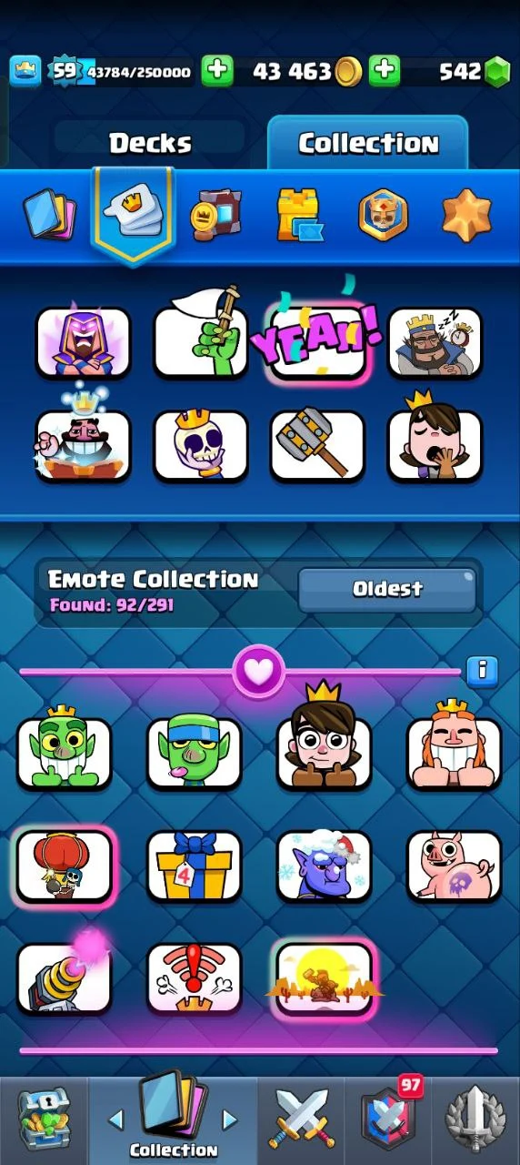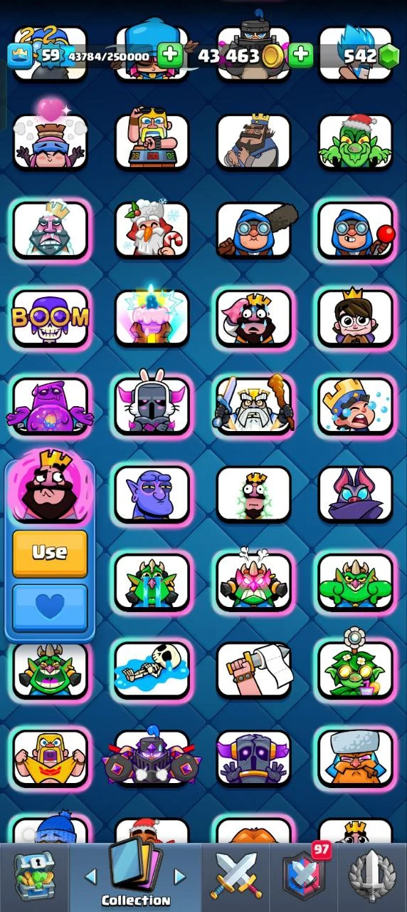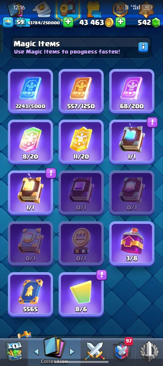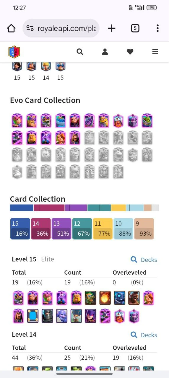 ✨KT (15)🔥12K+ TROPHIES 🥰59 XP 🥳121 CARDS 💥 15 EVOLUTION CARDS 🃏 19 ELITE CARDS✨ 44 MAX CARD ♦️⚡92 EMOTE🥳INSTANT DELIVERY 🚚CL6
