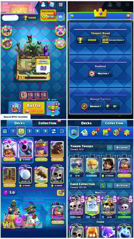 KT15 | 12000 TROPHIES | LVL 58 | 50 MAX CARDS | 19 ELITE CARDS | 18 EVO CARDS | 136 EMOTES | SEASONAL ARENA 3 | INSTANT DELIVERY