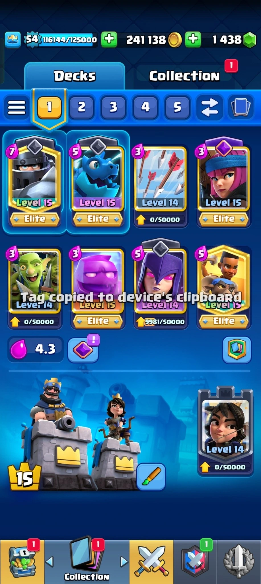 🔥 [PREMIUM] 🔥 9264 TROPHYS 🔥 5 EVO CARDS 🔥5 ELITE CARDS 🔥 49 MAX CARDS 🔥 43 EMOTES 🔥XP (54)🔥KT (15) 🔥 241138 GOLD 🔥 1438 GEMS 🔥 3 KT SKINS🔥 INSTANT DELIVERY 🚚