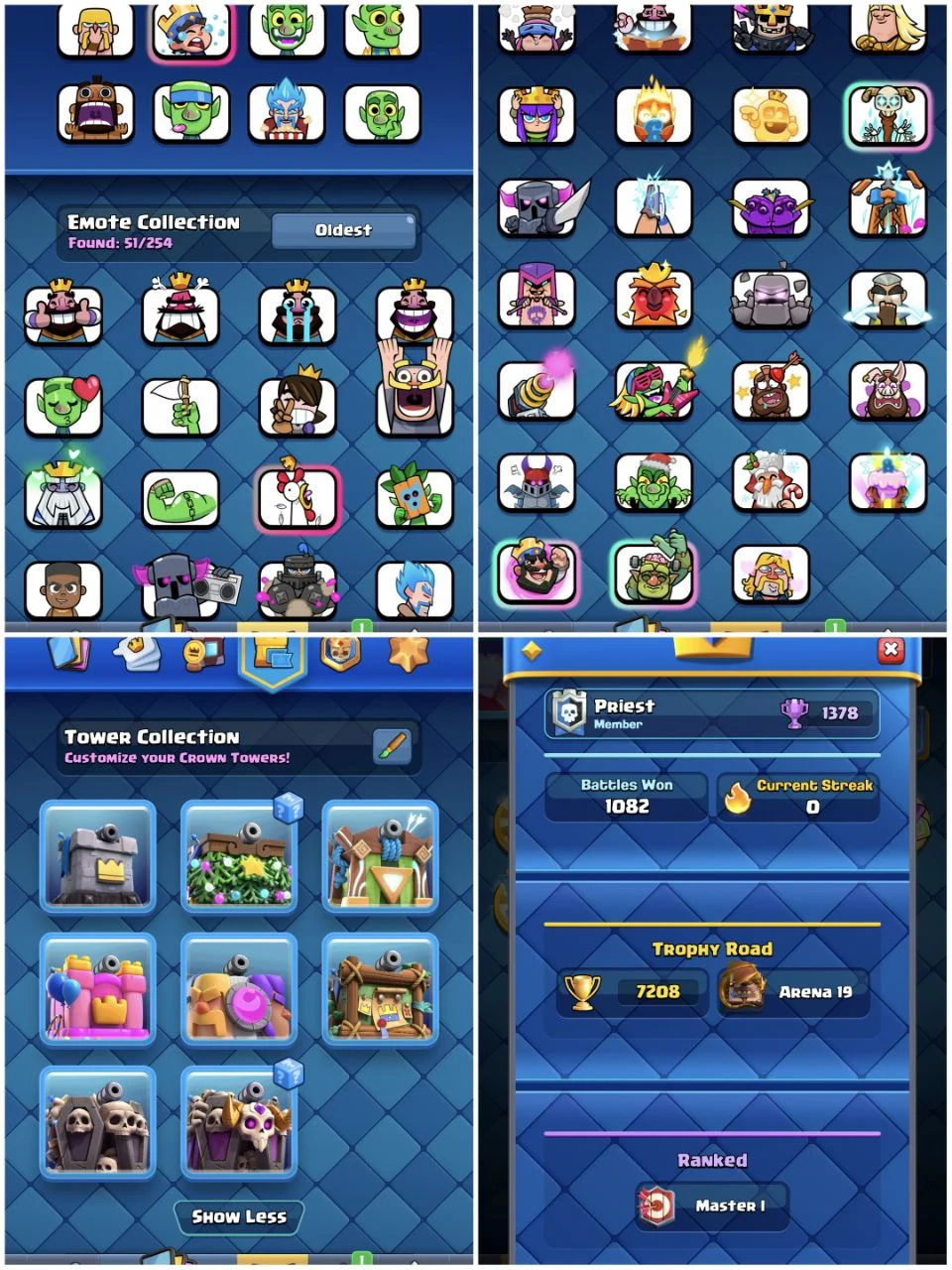 ✨[PREMIUM]✨ [MEGA ACCOUNT]🔥 7205 TROPHIES🏆 11 MAX CARDS ⭐ KT 13 🚀 XP 40 🌟 ARENA 19 🏰 7 EXTRA TOWER SKINS 💠 IOS AND ANDROID WORKING 🔐 INSTANT DELIVERY 🚚
