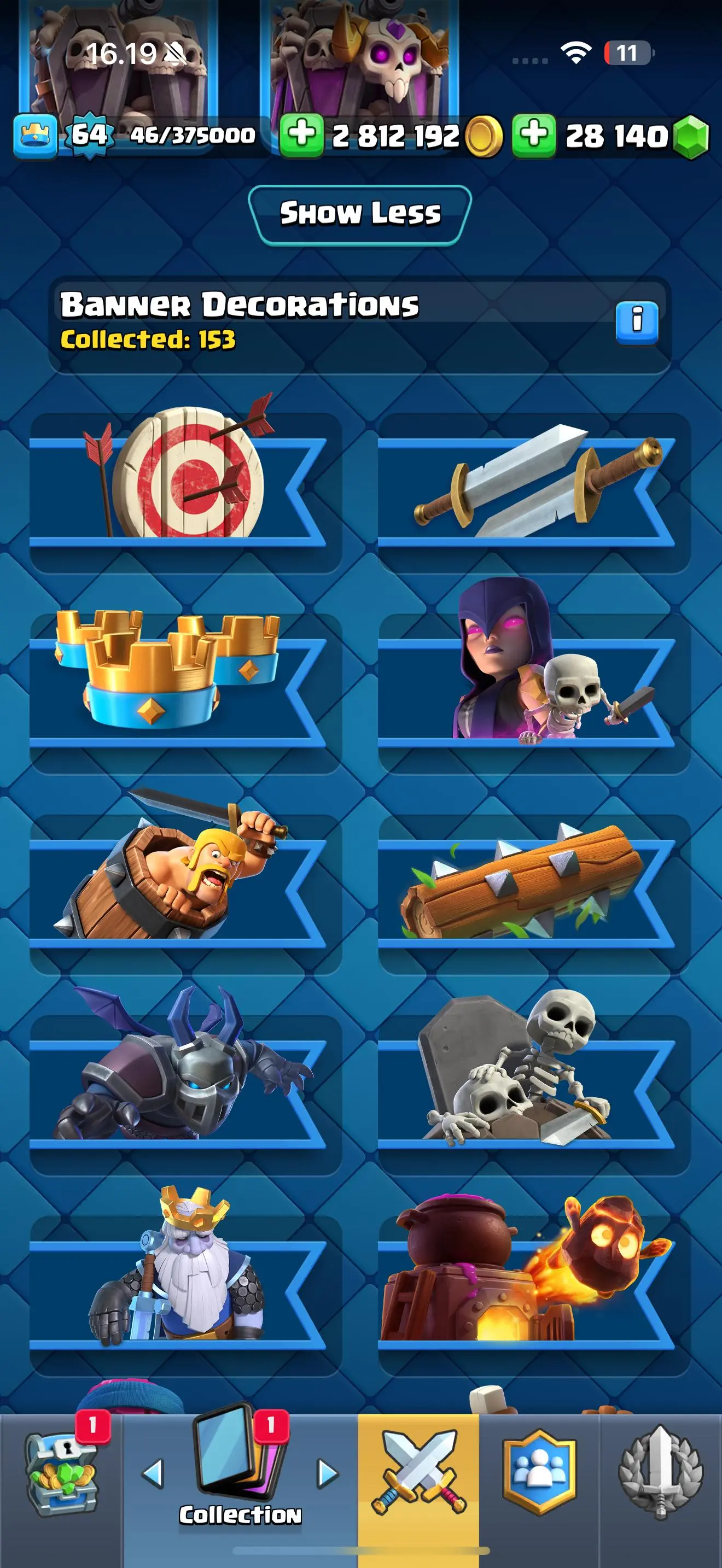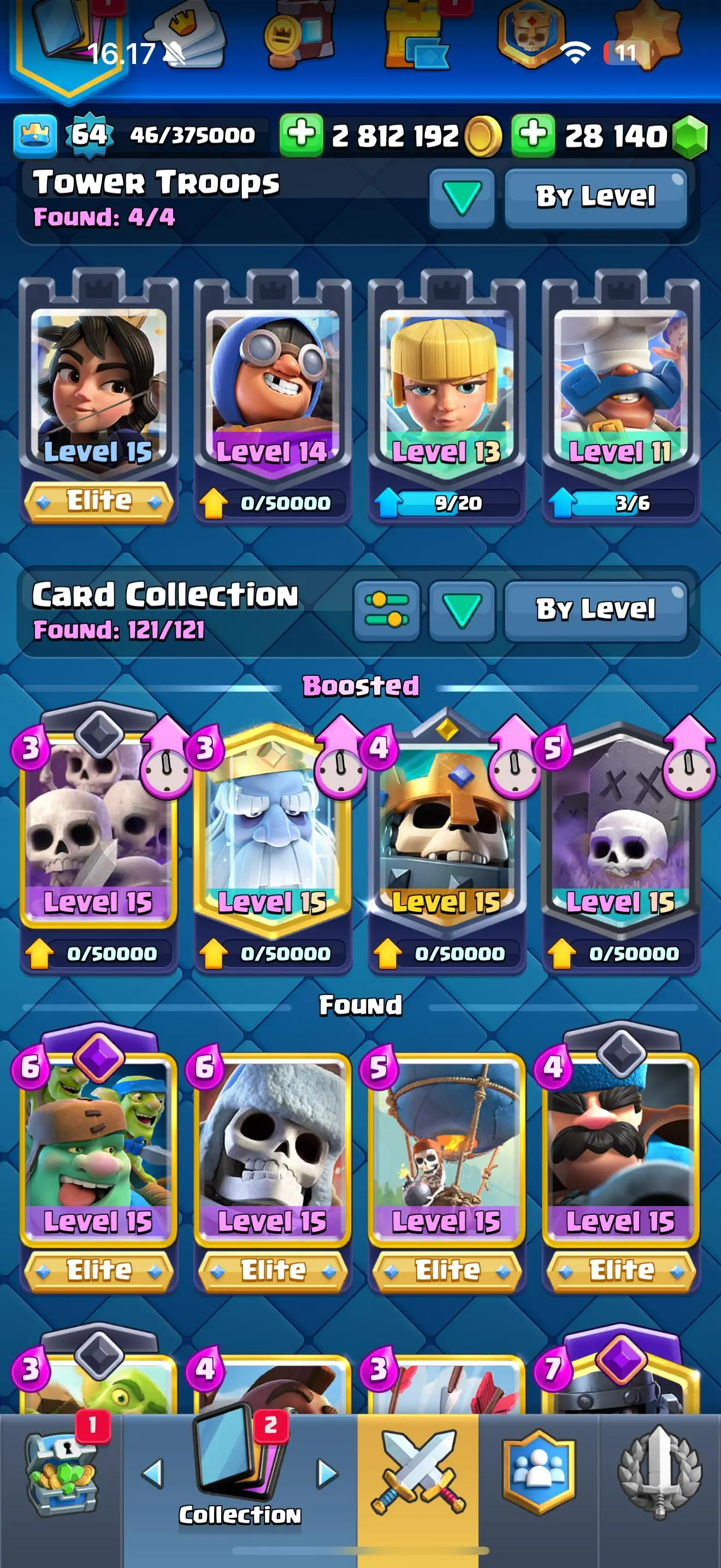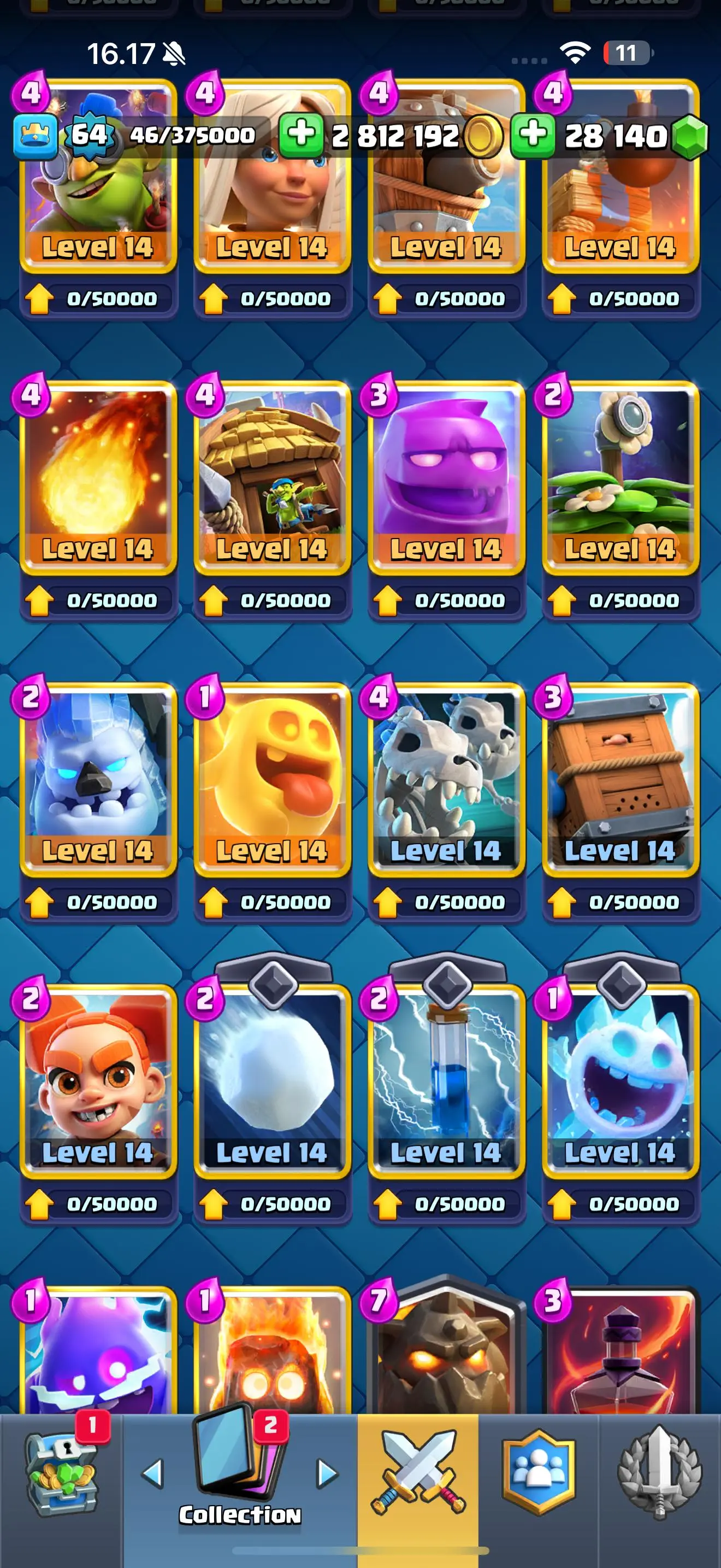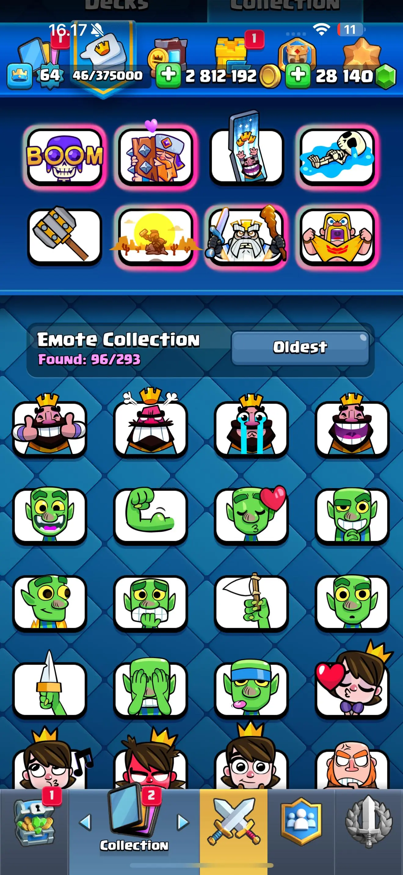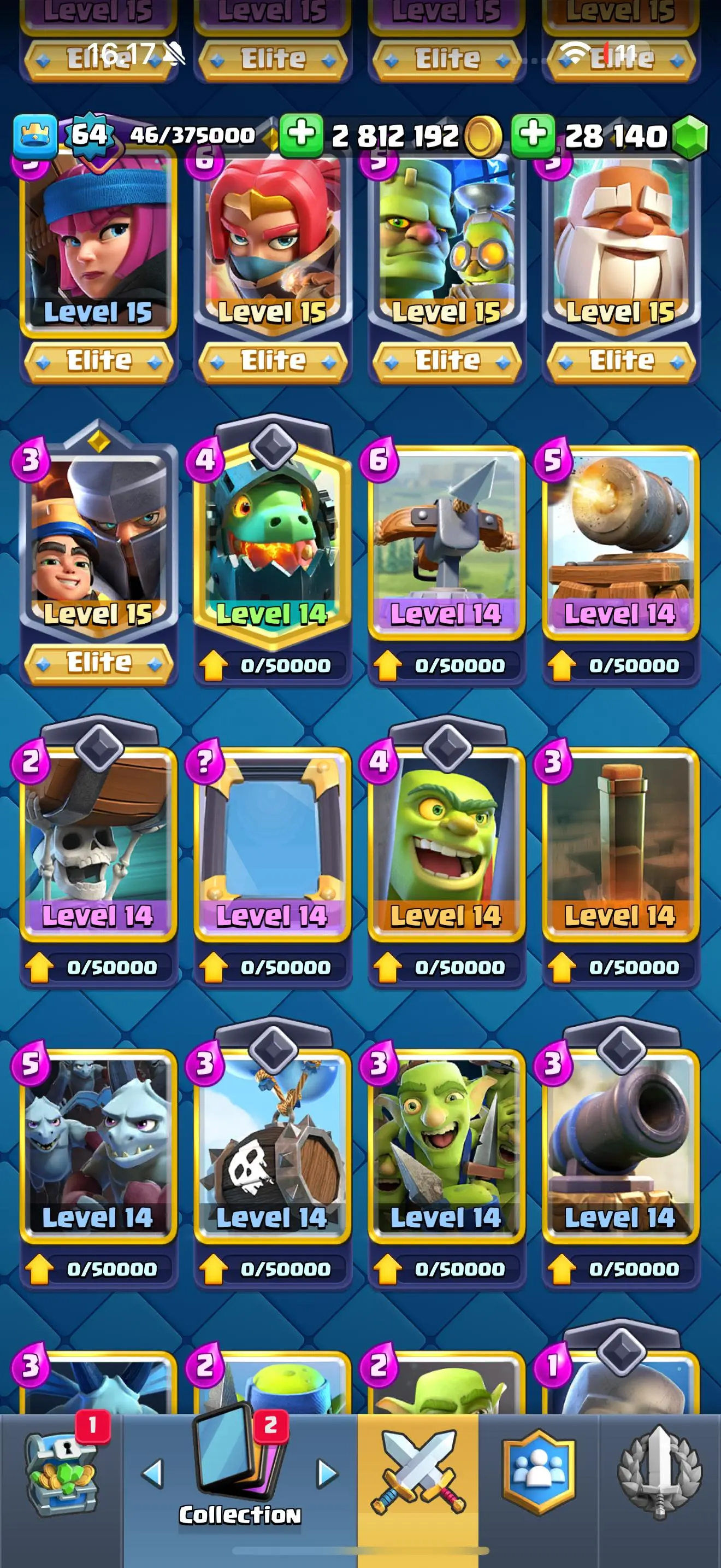 RARE💎28 K GEMS🔥KT 15 90% MAX🔥109 max cards🔥41 elite cards☠️18 evolution cards✅2.8 M GOLD✅96 emote✅13 tower skin✅153 decorations