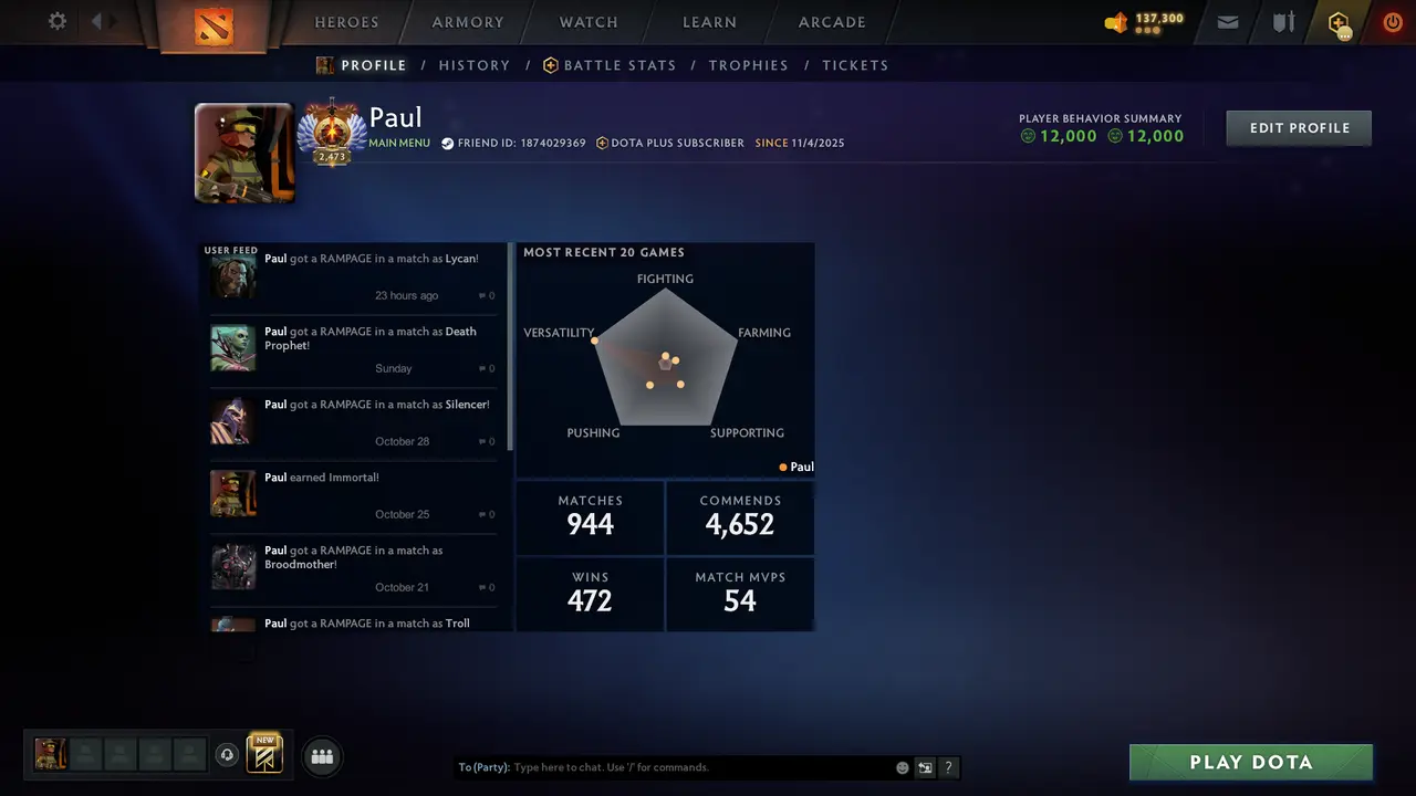 7222 MMR ⸱ Immortal ⸱ Fast search(Main pool) ⸱ 12000 behavior ⸱ 1015 matches ⸱ Original email