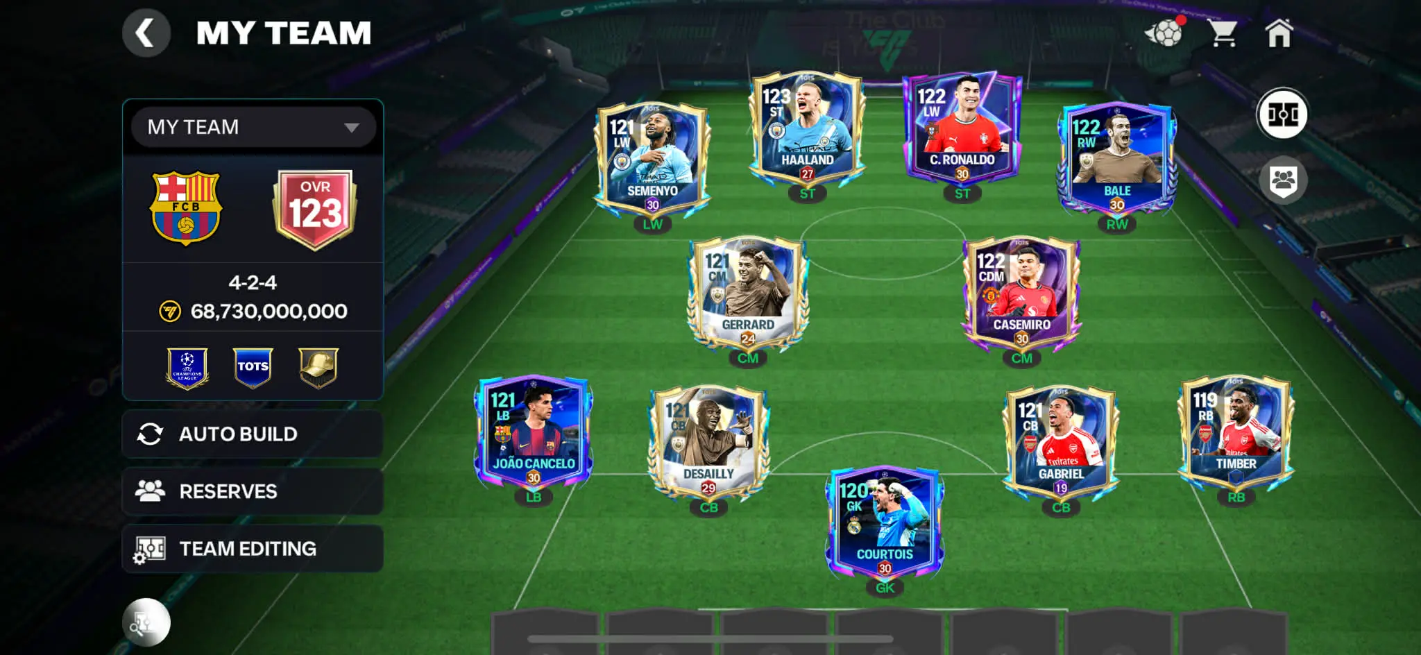 ios+Android | 123 OVR | Cr7 122 | tots haaland 123 | 3B gold coin cash |