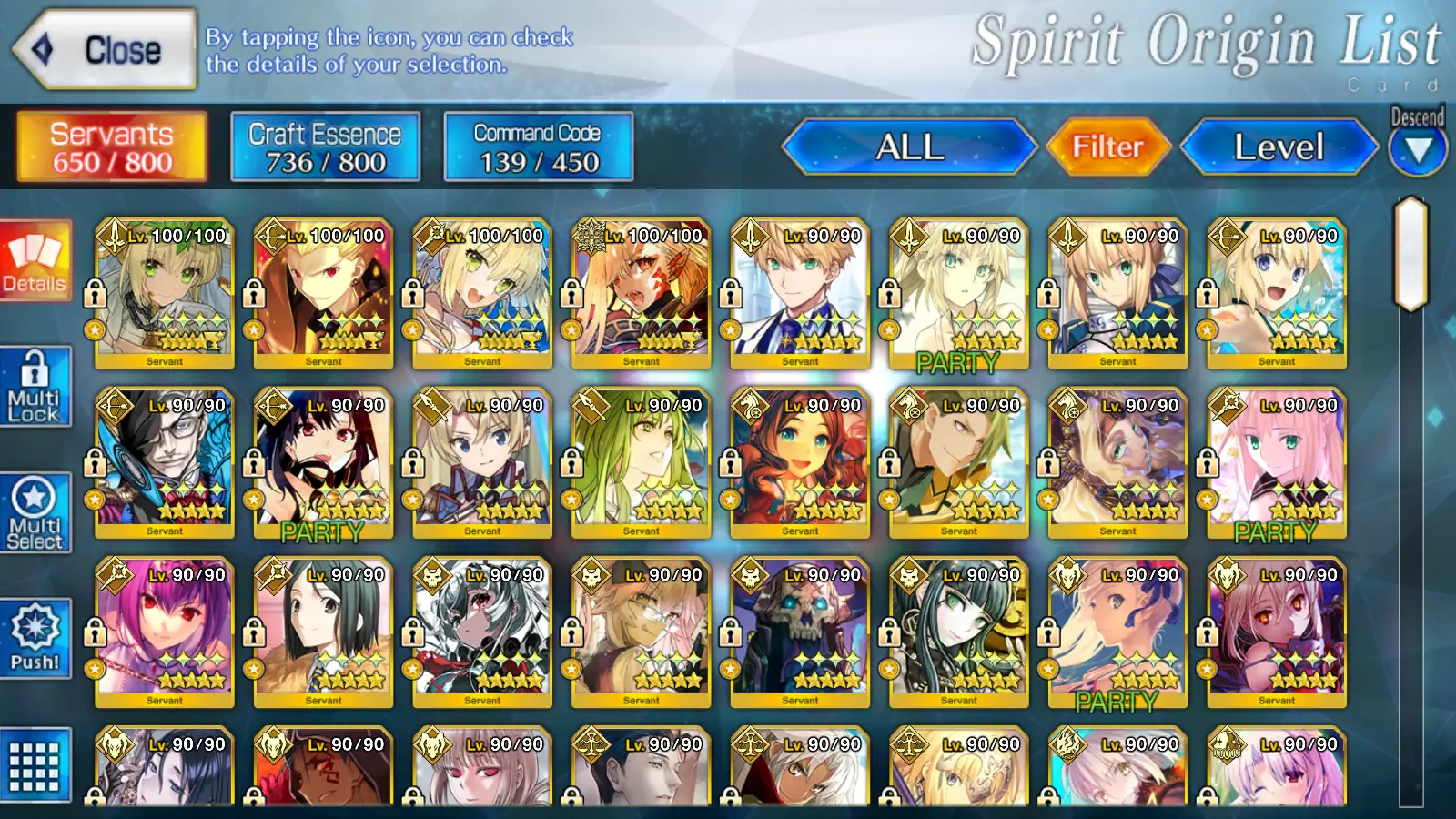 FGO362: NA | Lv146 | 1646 days| BD changeable| 44 SSR | 48 WNP | Black Grail | 37 SSR Ascensions| 69 Golden Fruits | 27 Crystallized Lores | 10 Holy Grails | 637M QP