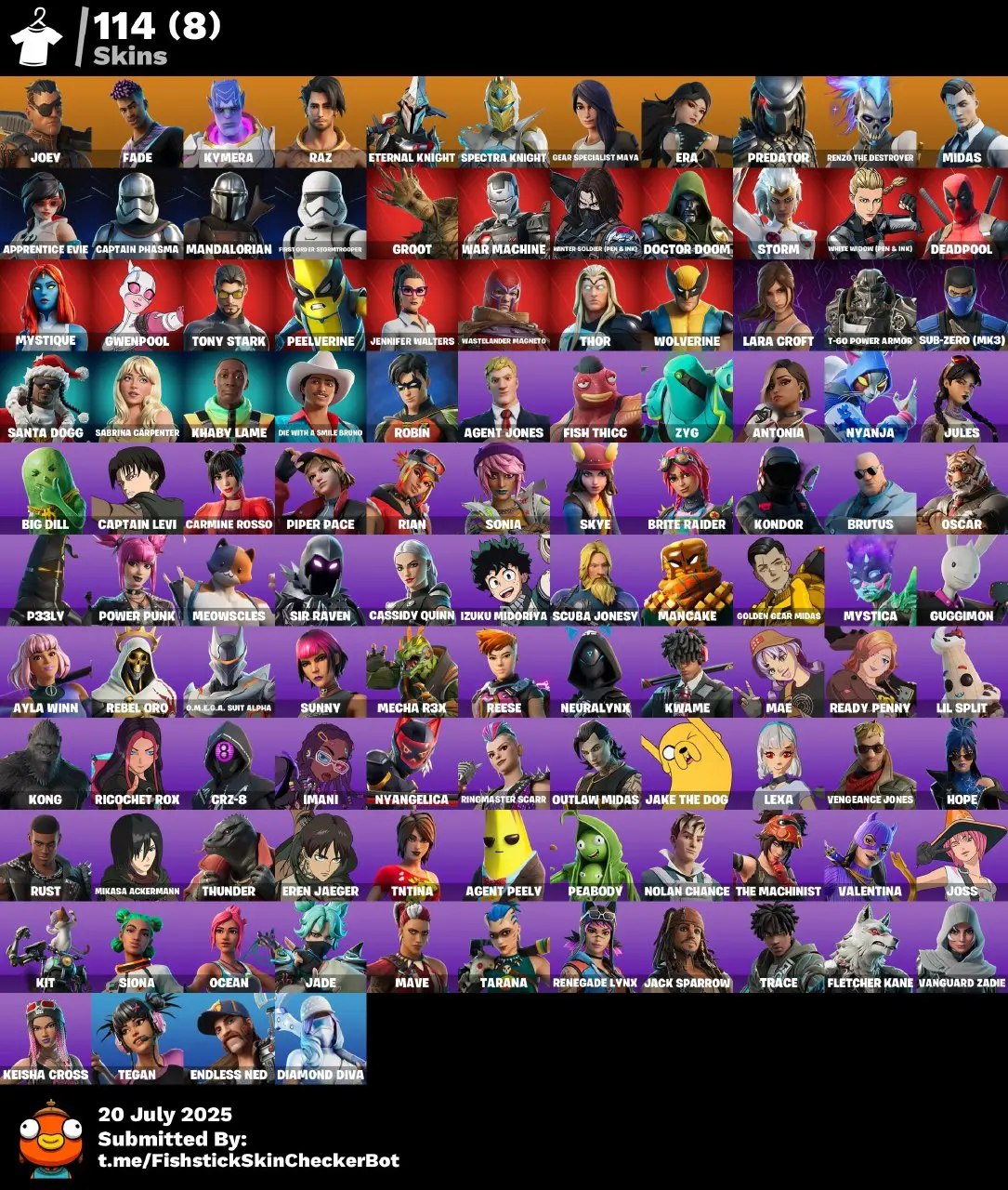 🪩114 skins 🎮 [PC/PSN/XBOX] 🐉 Joey 🌌 Fade 🦊 Kymera ⚔️ Raz 🌈 Eternal Knight 💫 Spectra Knight 🦋 Gear Specialist Maya 🌟 Era 🔮 Predator 🧿 FTN137
