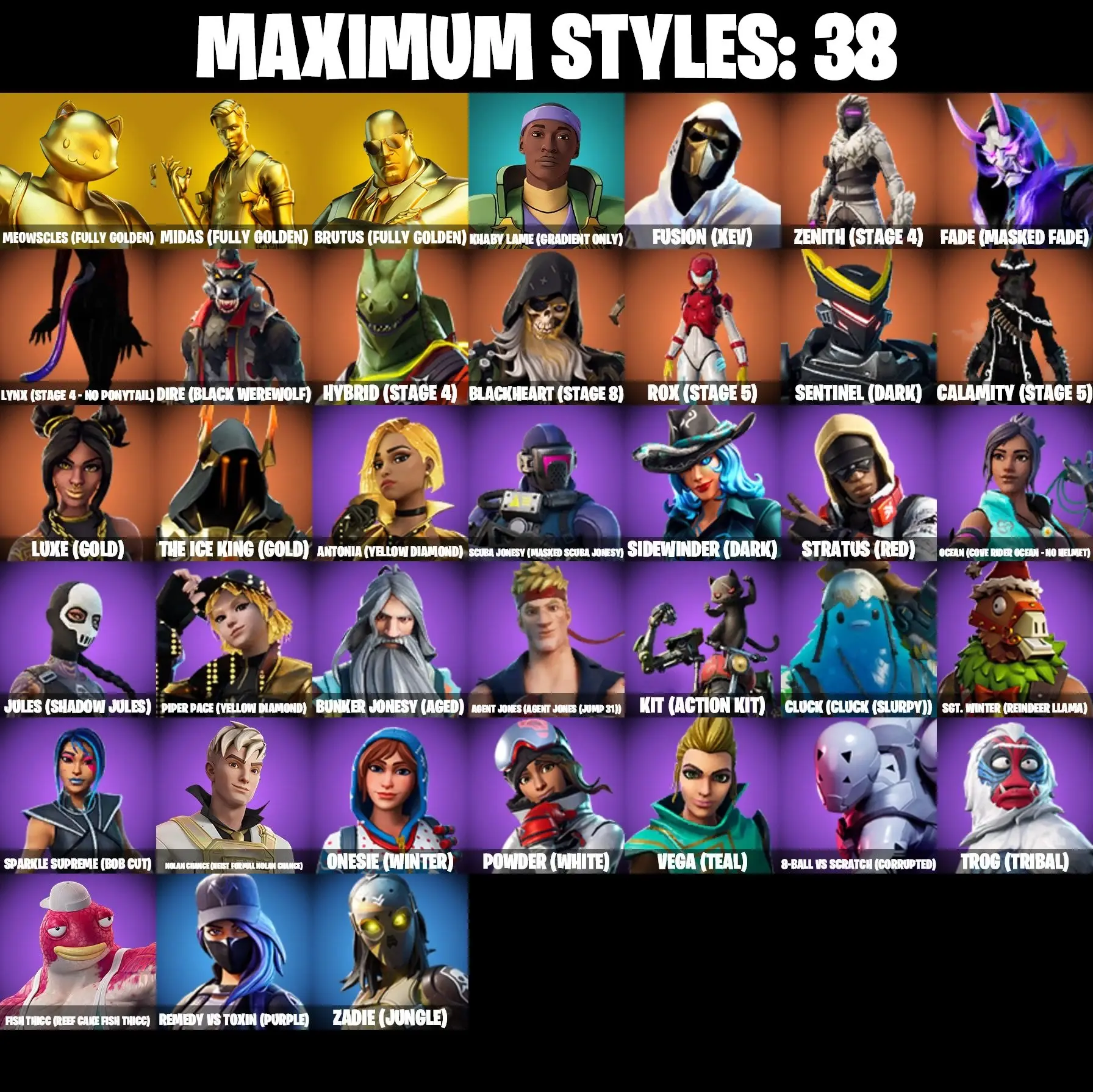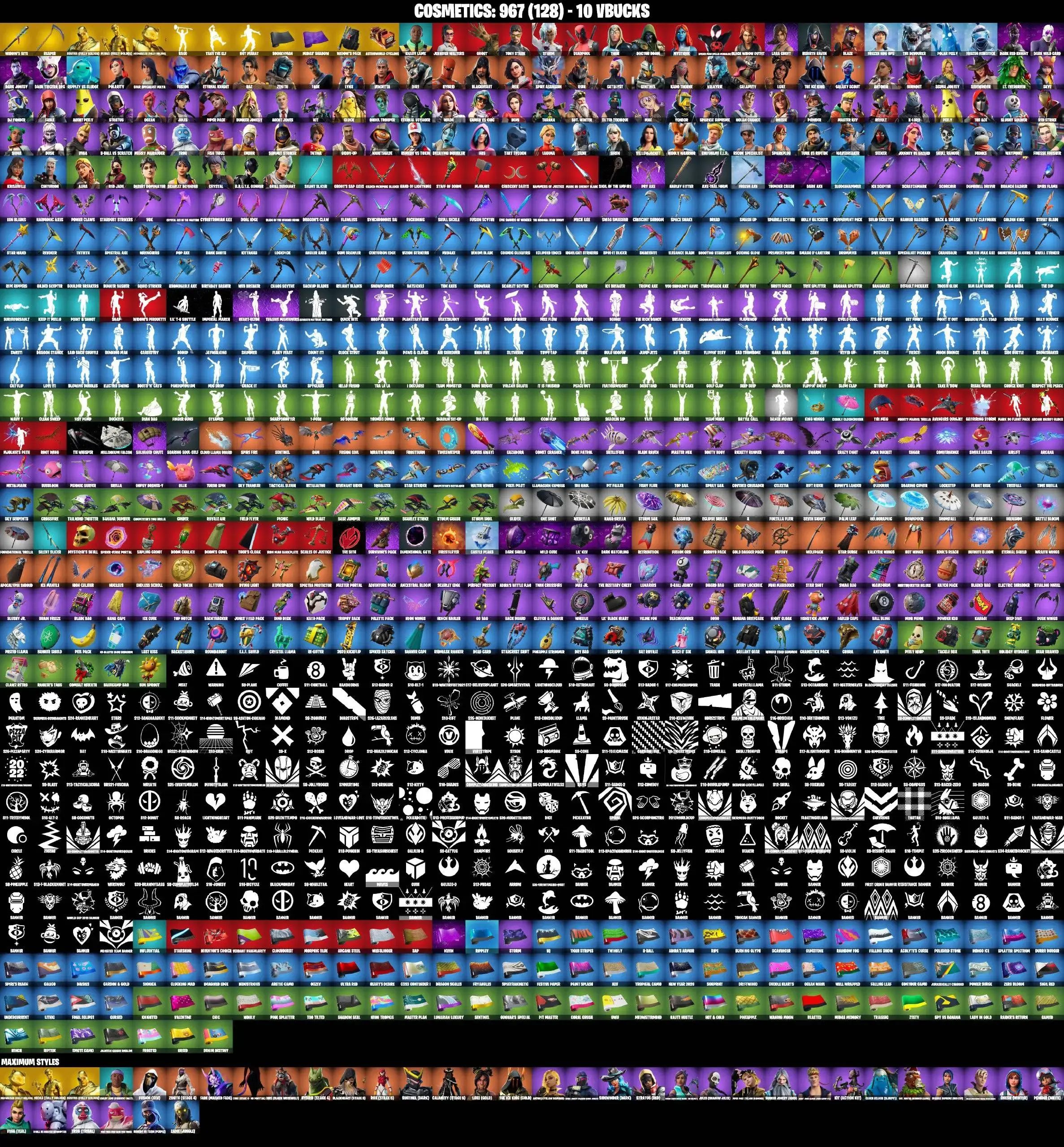 128 SKINS | POLARITY | GHOUL TROOPER | BLACK WIDOW OUTFIT | LARA CROFT | SPIDER-MAN MILES MORALES | GOLDEN MIDAS | SKULLRANGER | JULES MAX | ONESIE MAX | AURA | AGENT PEELY | ASTROWORLD CYCLONE | REAPER | ICE BREAKER | PEPPERMINT