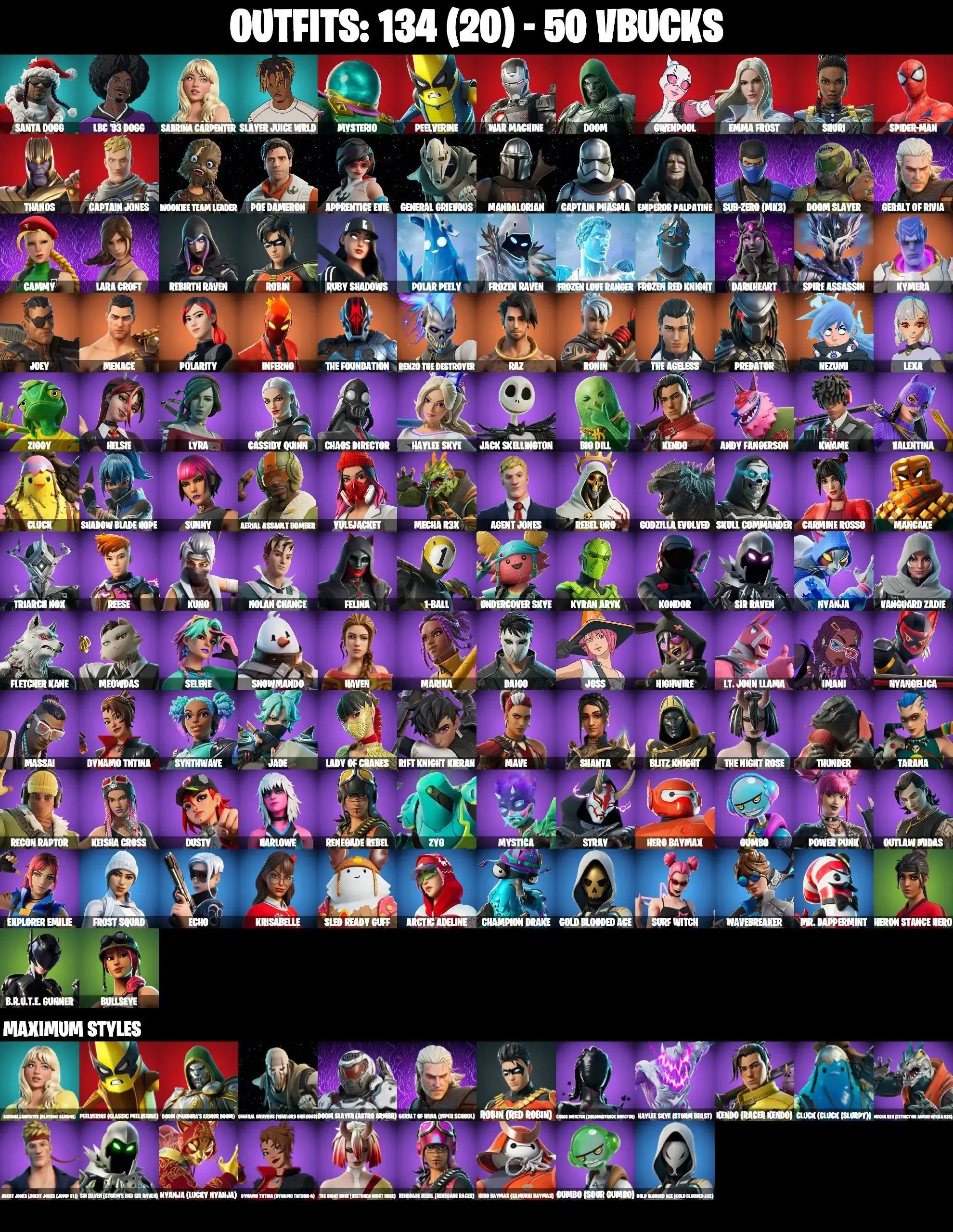 134 SKINS | CAMMY | POLARUTY | LARA CROFT | MANDALORIAN | GENERAL GRIEVOUS MAX | SPIDER-MAN | WOOKIE TEAM LEADER | POE DAMERON | APPRENTICE EVIE | CAPTAIN PHASMA | EMPEROR PALPATINE | SUB-ZERO MK3 | PREDATOR | HAYLEE SKYE MAX | CH