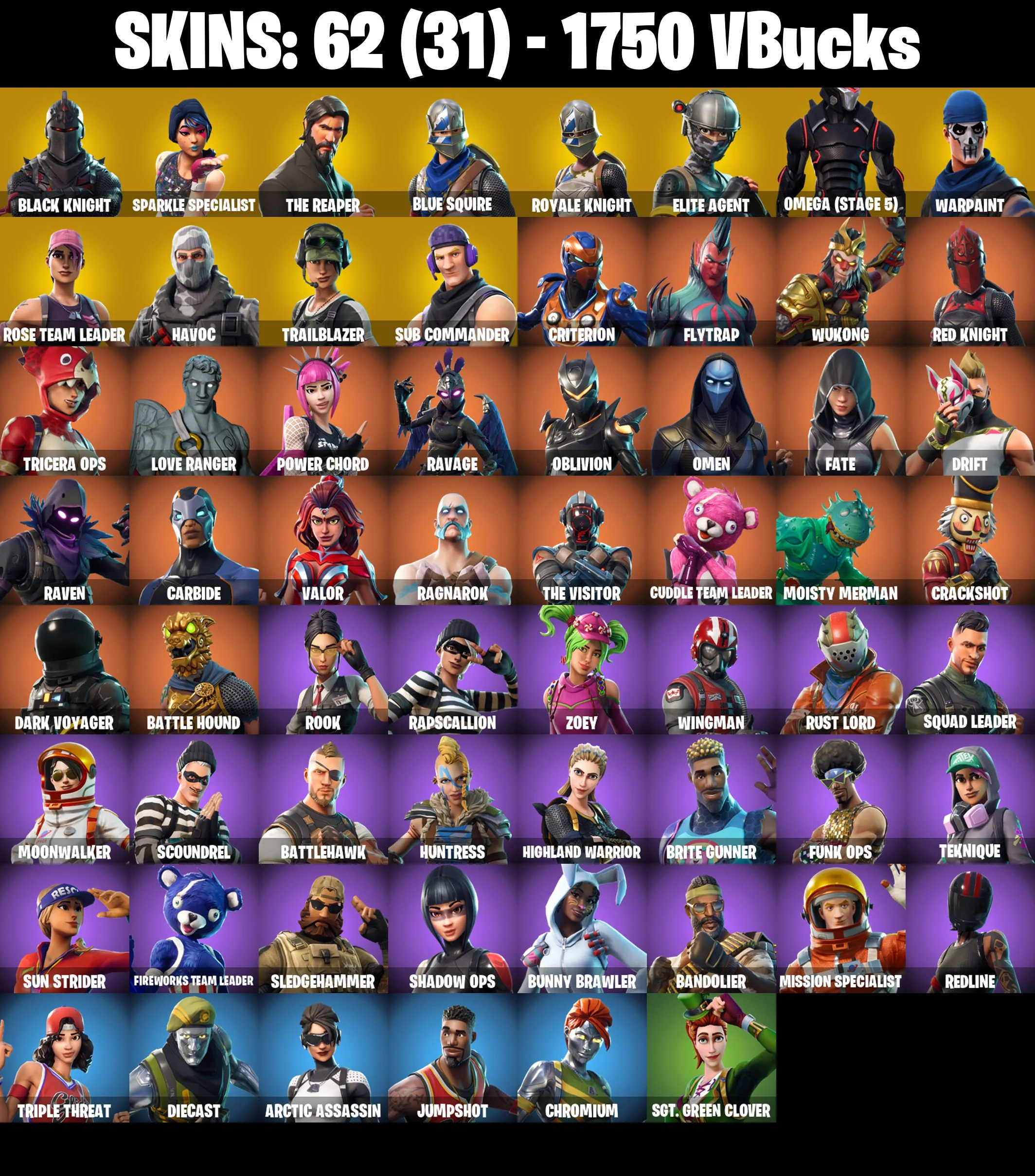🎆62 SKINS ⚡️PC/PSN/XBOX⚡️ BLACK KNIGHT 👑 SPARKLE SPECIALIST 👑 THE REAPER 👑 BLUE SQUIRE 👑 ROYALE KNIGHT 👑 ELITE AGENT 👑 OMEGA (STAGE 5) ⚡️ 1750 VB #M644