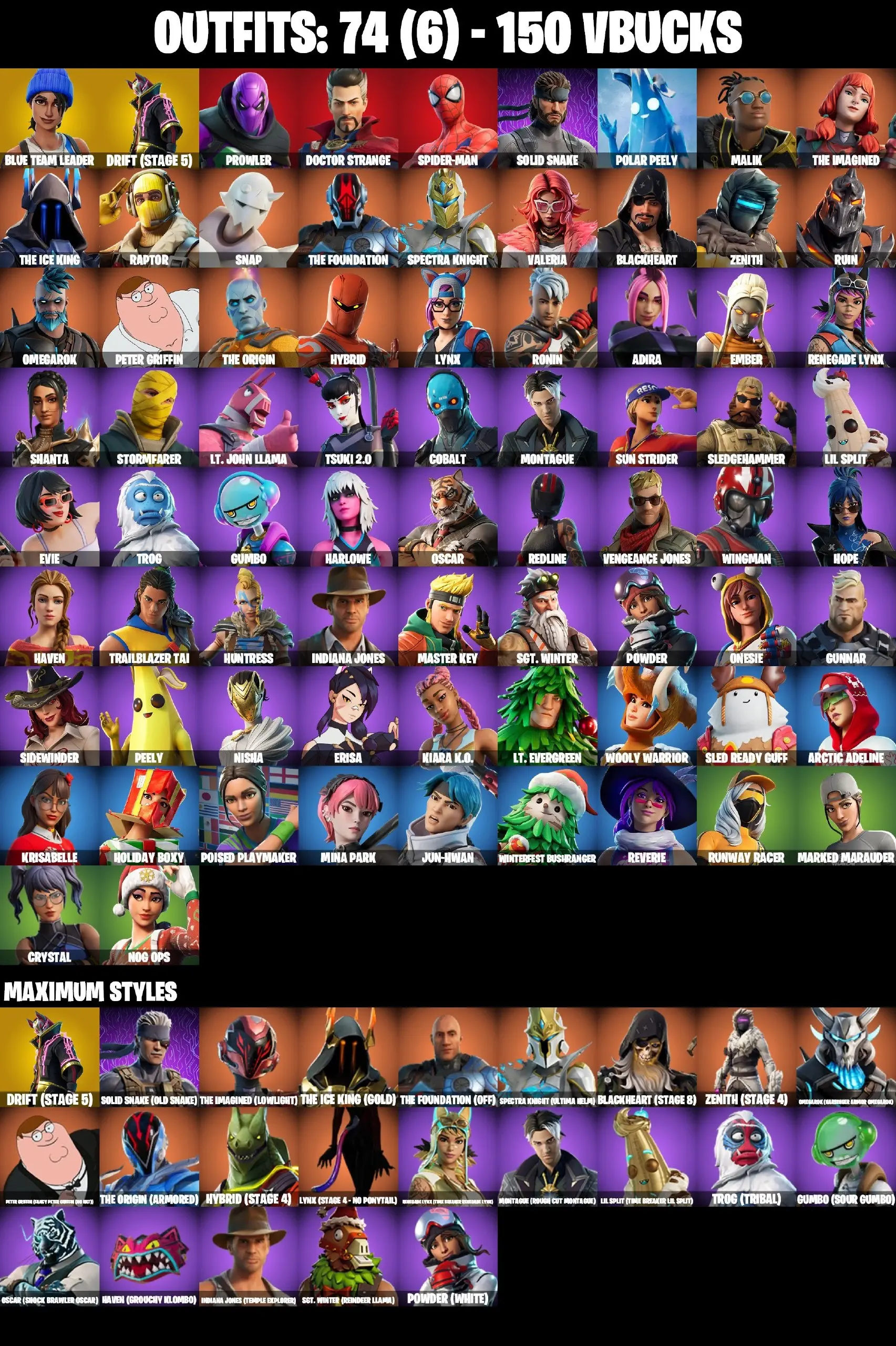 74 SKINS | SPIDER-MAN | MINA PARK | GET GRIDDY | TSUKI 2.0 | EVIE | REVERIE | BLUE TEAM LEADER | PEELY | POISED PLAYMAKER | NOG OPS | ASTROWORLD CYCLONE | PEPPERMINT PICK | TAKE THE ELF | CAN PLAY ON PSN,XBOX,PC,NINTENDO,MOBILE |
