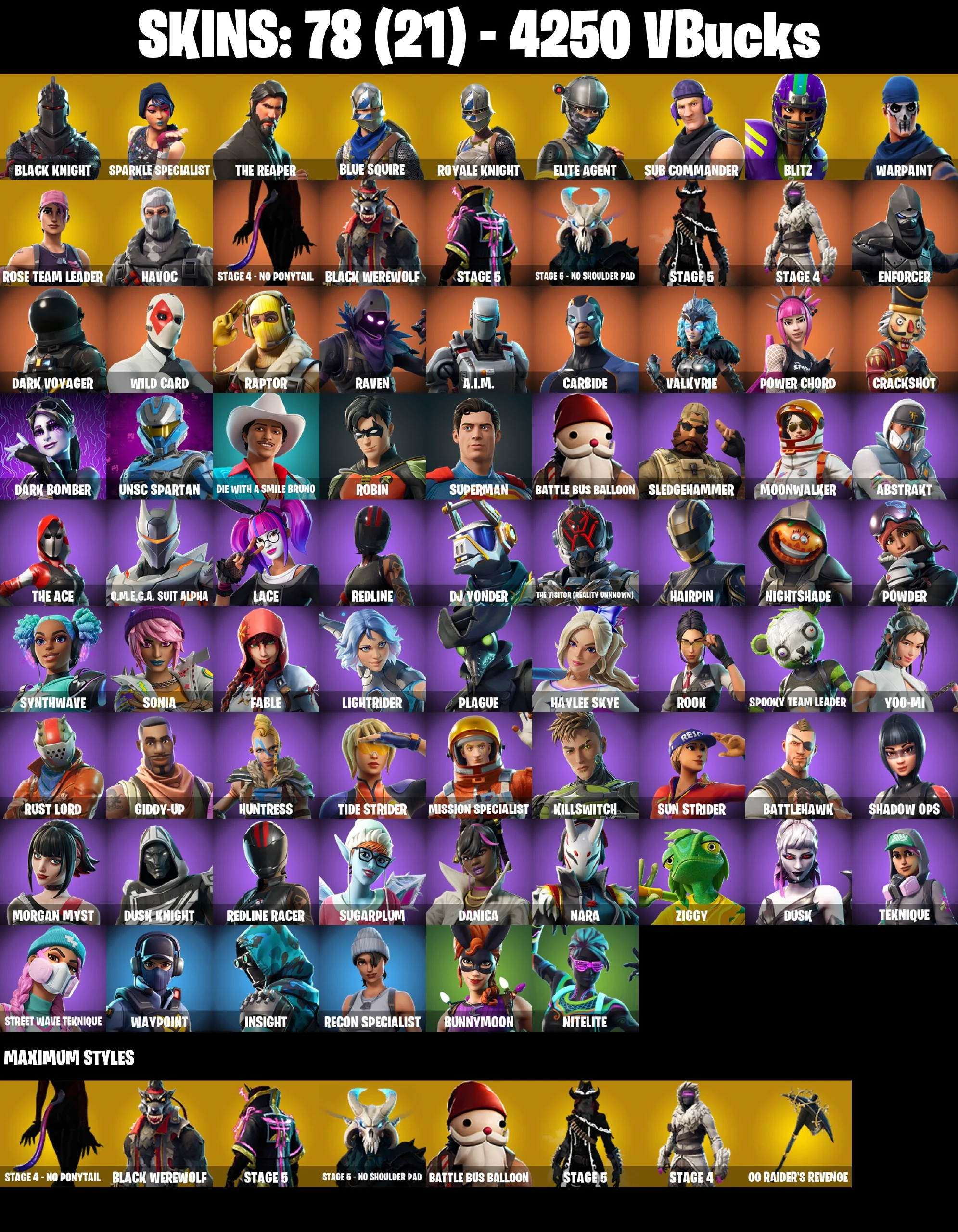 💥🌟💥 EXCLUSIVE OFFER 💥🌟💥 78 SKINS OG RAIDERS REVENGE 💎 BLACK KNIGHT 💎 FLOSS 💎 TAKE THE L 💎 THE REAPER 💎ROYALE KNIGHT 💎 ELITE AGENT 💎 SUB COMMANDER 💎 BLITZ 💎 FULL ACCESS 🎮 PSN/XBOX/PC 💰 4250