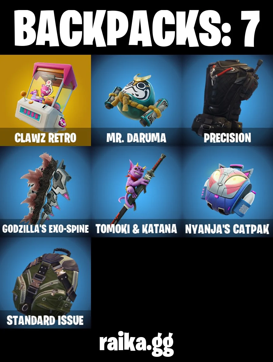 ⭐ Inactive for 5 years | Mail changenable | 0 skins | Raider's Revenge | Mako | Mr. Daruma | Precision | Godzilla's Exo-Spine | Tomoki & Katana | Nyanja's Catpak | Standard Issue | Shooting Starstaff | 100 VB