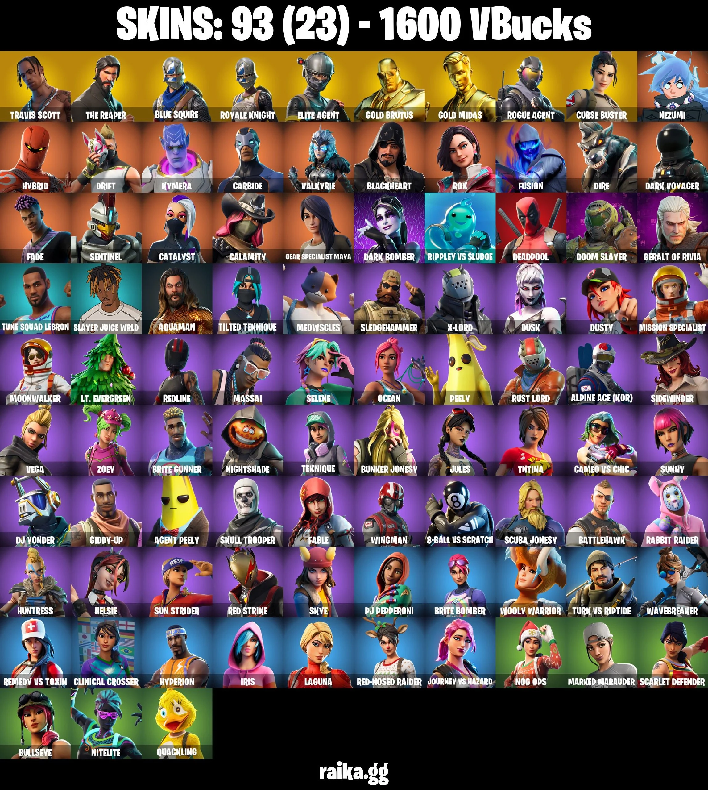 🎁✨OG BUNDLE✨🎁 93 SKINS 🌙 TRAVIS SCOTT 🌙 THE REAPER 🌙 BLUE SQUIRE 🌙 ROYALE KNIGHT 🌙 ELITE AGENT 🌙 TAKE THE L 🌙 SKULL TROOPER 🌙 MEOWSCLES 🌙 TNTINA 🌙 REAPER 🌙 GOLD BRUTUS 🌙 GOLD MIDAS 🌙 CANDY AXE 🌙 DRIFT 🌙 DEADPOOL 🌙 PEELY 🌙 1600 V-BUCKS ⚡️PC/PSN/XBOX⚡️