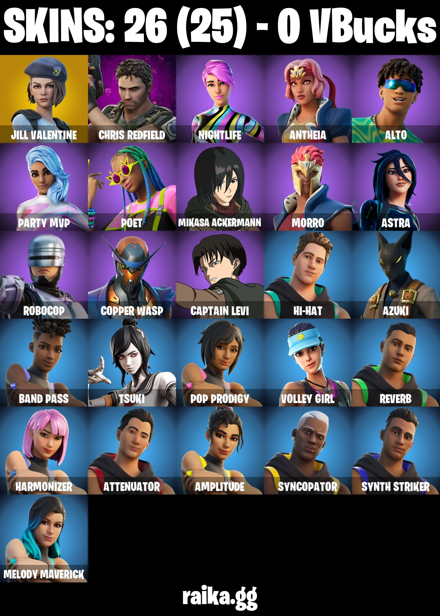 Original Email ✅ Inactive for 3 years | 26 skins | Jill Valentine | Chris Redfield | Nightlife | Antheia | Alto | Party MVP | Poet | Mikasa Ackermann | Morro | Astra | RoboCop | Copper Wasp | 0 VB