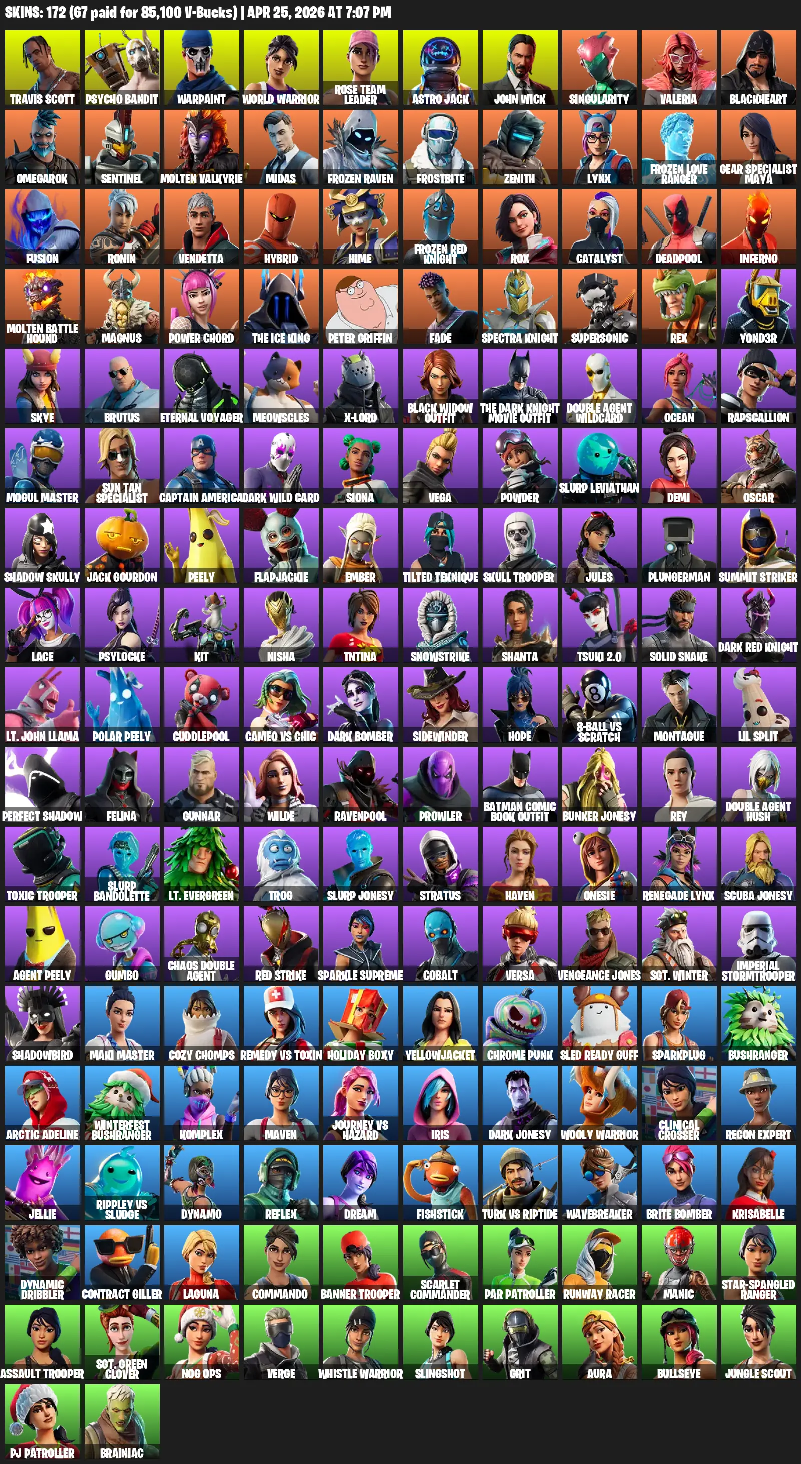 [PC] | 172 skins | OG STW | Travis Scott | Psycho Bandit | Warpaint | World Warrior | Rose Team Leader | Astro Jack | John Wick | #QRE0942