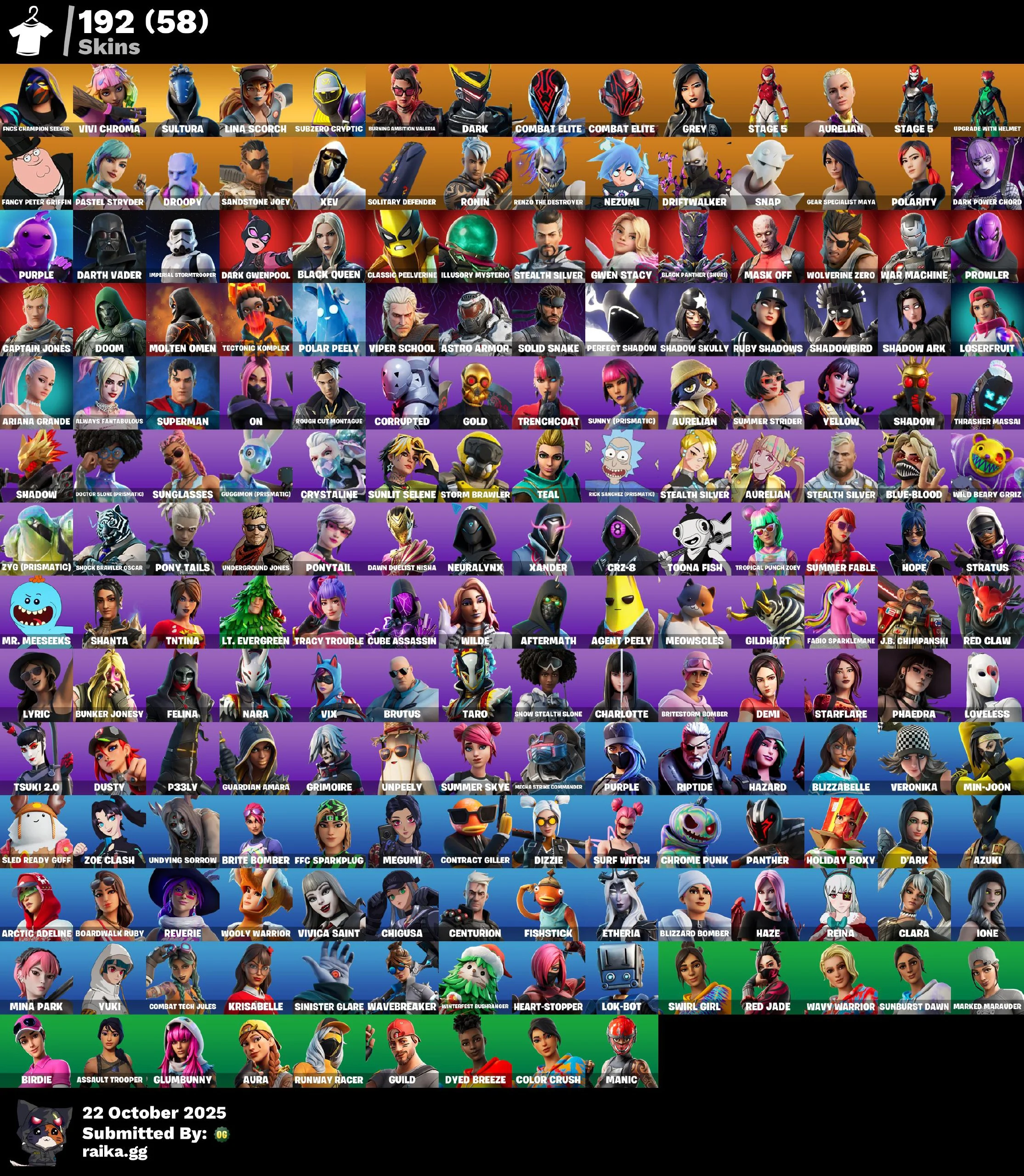 [PC] 192 skins | Aura | Surf Witch | Harley Hitter | Jabba Switchway | Laugh It Up | Brite Bomber	Mam50