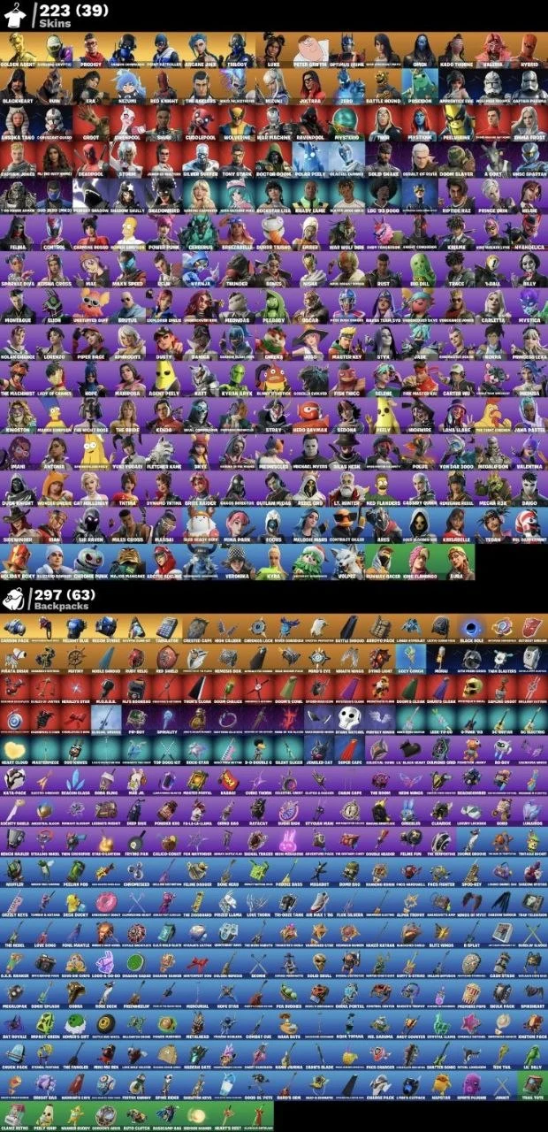 [PC] 223 skins | Gold Midas | Subzero Cryptic | Prodigy | Carbon Commando | Point Patroller | Arcane Jinx | Trilogy | Luxe | Peter Griffin |