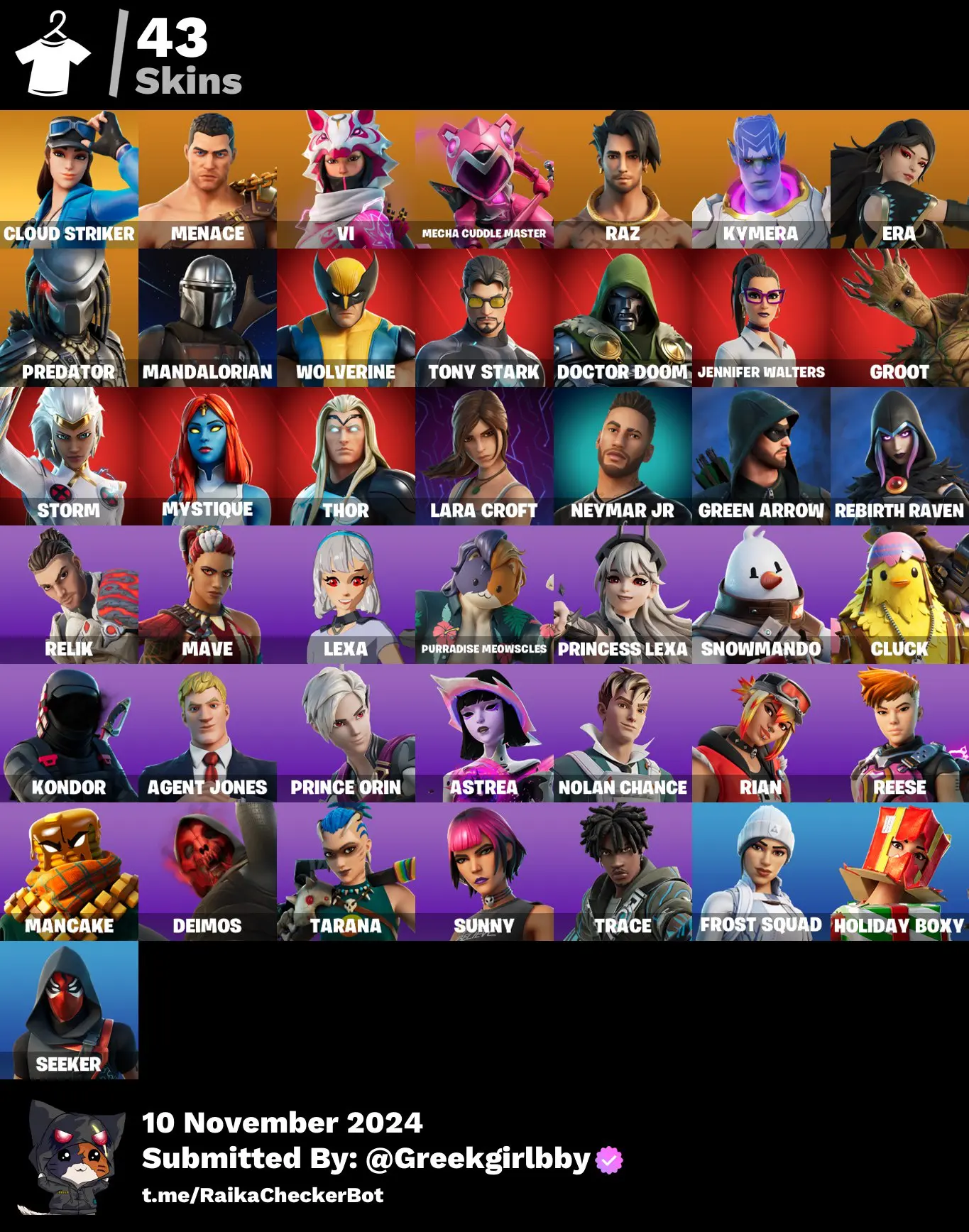 [PC] 43 skins | Cloud Striker | Menace | Vi | Mecha Cuddle Master | Raz | Kymera | Era | Predator | Full Acess
