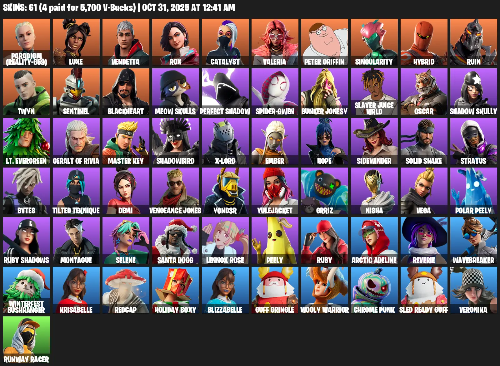 [PC/PSN] | 61 skins | 1000 V-bucks | Paradigm (Reality-659) | Luxe | Vendetta | Rox | Catalyst | Valeria | Peter Griffin | #JCQ6334 | #MBFN