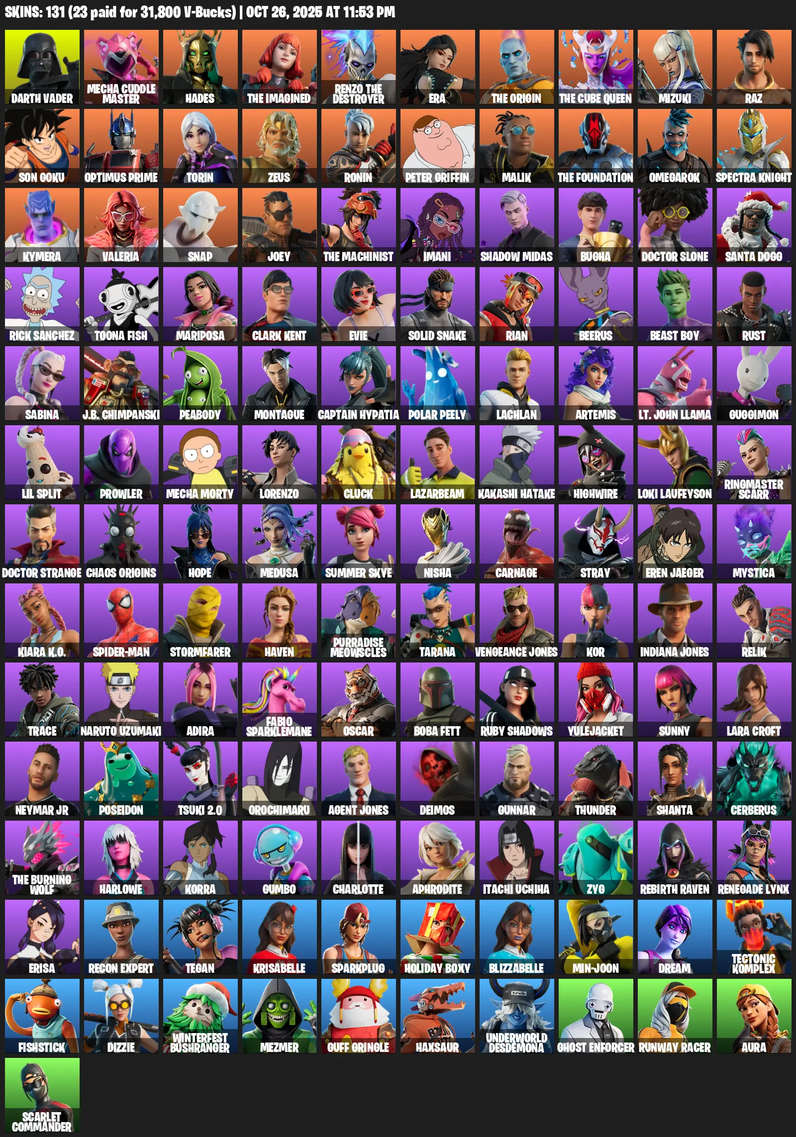 [PC/PSN/XBOX] | 131 skins | 550 V-bucks | Lara Croft | Darth Vader | Mecha Cuddle Master | Hades | The Imagined | Renzo the Destroyer | Era | S4G