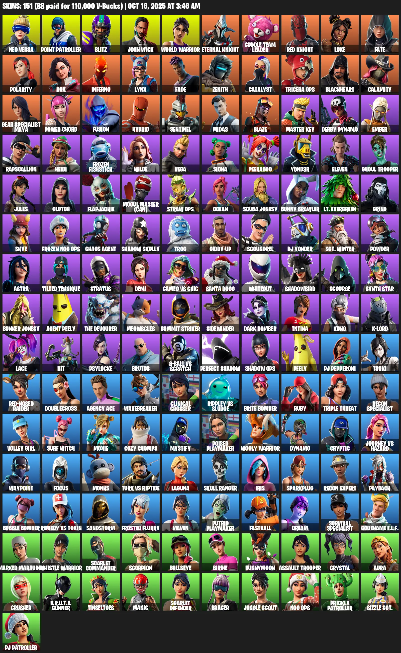 [PC/PSN/XBOX] | 151 skins | Merry Mint Axe | Neo Versa | Point Patroller | Blitz | John Wick | World Warrior | Eternal Knight | #DZR5229 | #MBFN