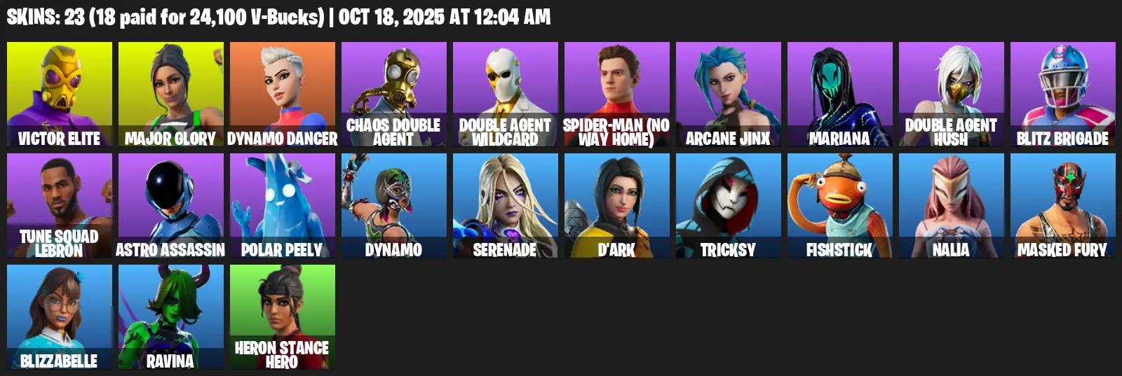 [PC/PSN/XBOX] | 23 skins | Victor Elite | Major Glory | Dynamo Dancer | Chaos Double Agent | Double Agent Wildcard | Spider-Man (No Way Home) | S4G