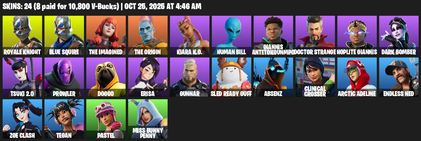 [PC/PSN/XBOX] | 24 skins | Royale Knight | Blue Squire | The Imagined | The Origin | Kiara K.O. | Human Bill | Giannis Antetokounmpo | S4G