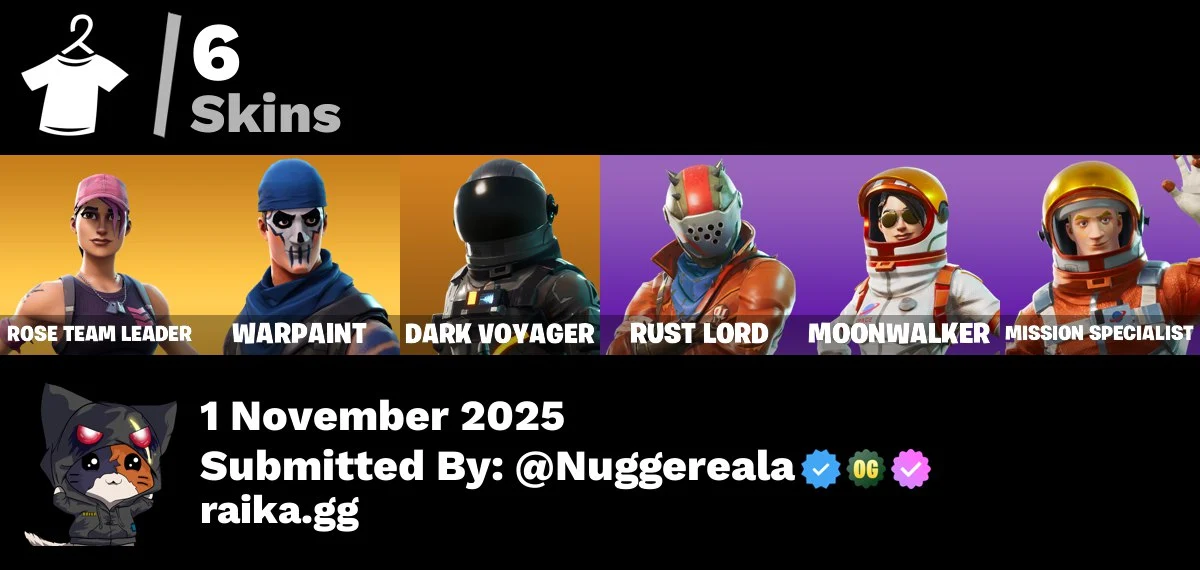[PC/PSN/XBOX] 6 skins | OG STW | Dark Voyager | Rust Lord | Moonwalker | Mission Specialist | Skirmish | Pursuit | Dark Matter | Astro | Standard Issue | 1700 VB