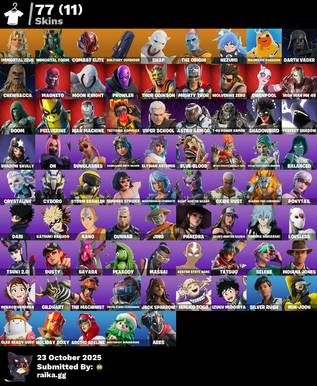 [PC/PSN/XBOX] 77 skins | Moon Knight | Immortal Zeus | Immortal Form | Combat Elite | Solitary Defender | Snap Mam58