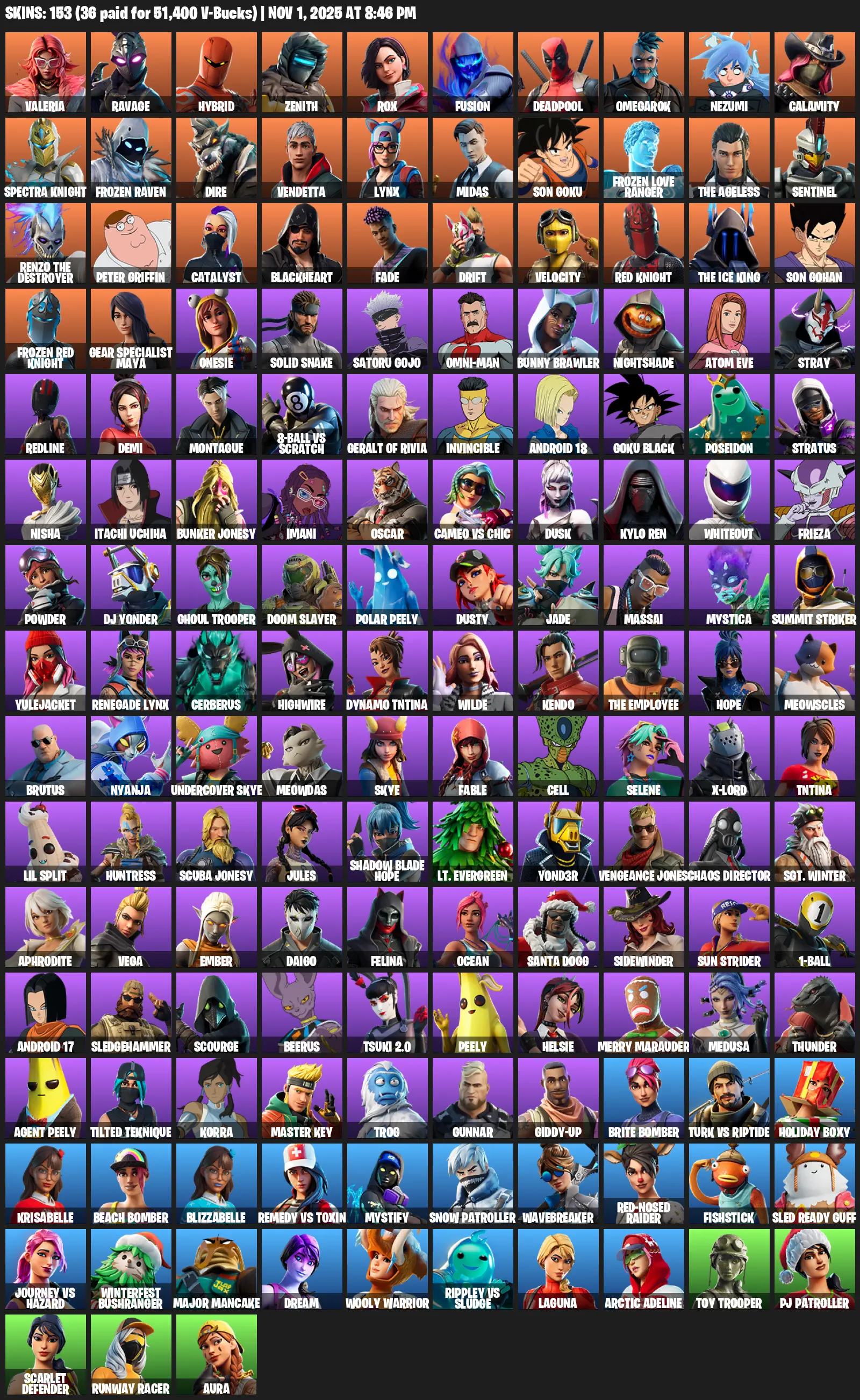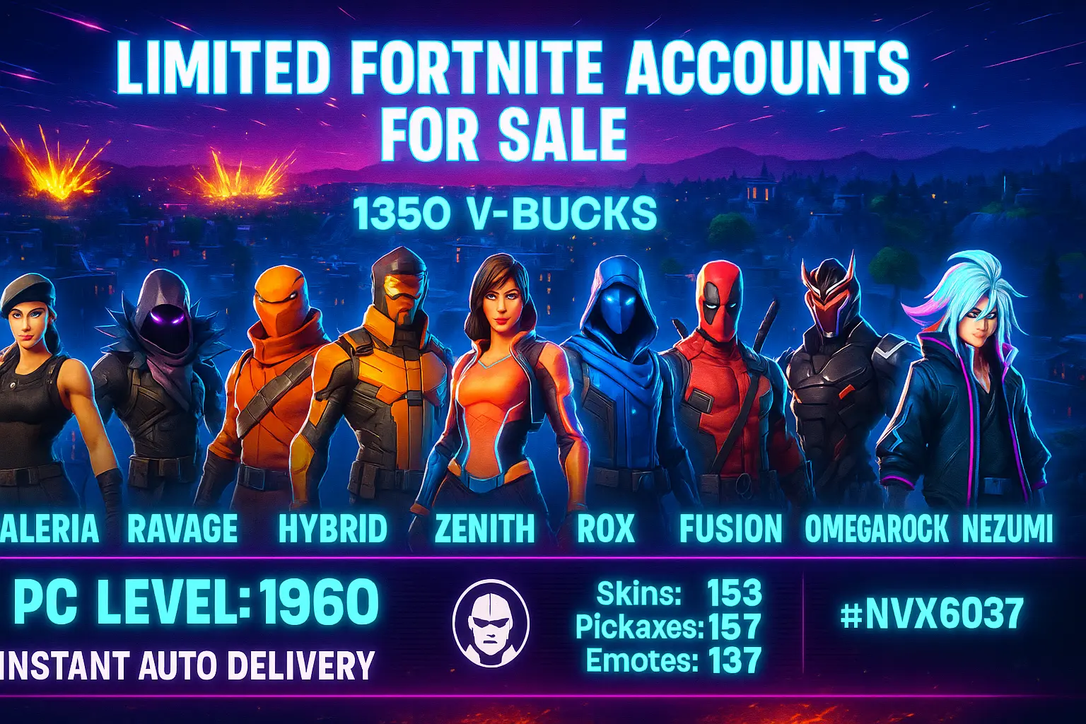 [PC/PSN/XBOX] | 153 skins | 1350 V-bucks | Valeria | Ravage | Hybrid | Zenith | Rox | Fusion | Deadpool | Omegarok | Nezumi | #NVX6037 | #MBFN