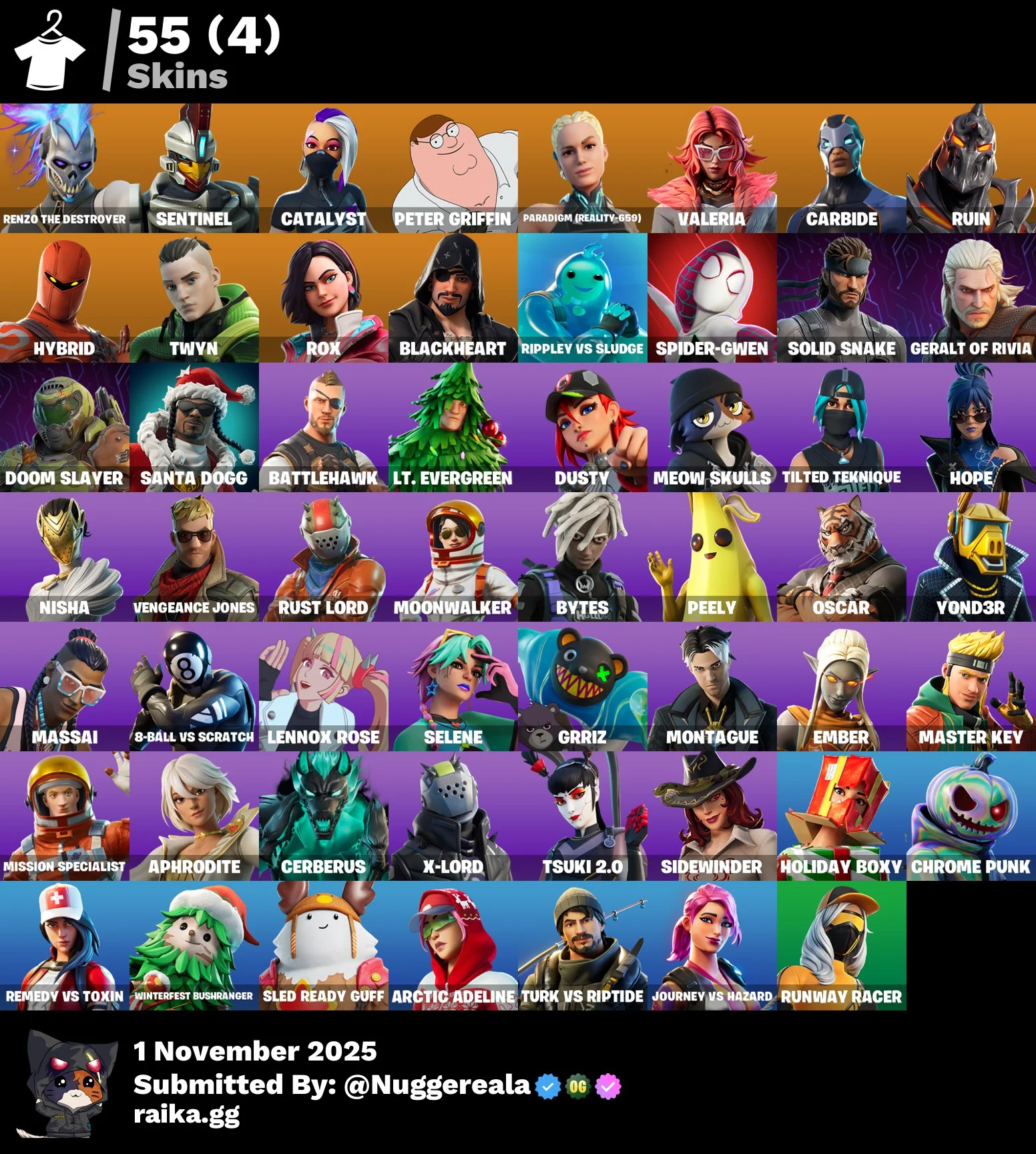 [PC/PSN/XBOX] Take The L | 55 skins | Renzo the Destroyer | Sentinel | Catalyst | Peter Griffin | Paradigm (Reality-659) | Valeria | Carbide | Ruin | Hybrid | Twyn | Rox | 150 VB
