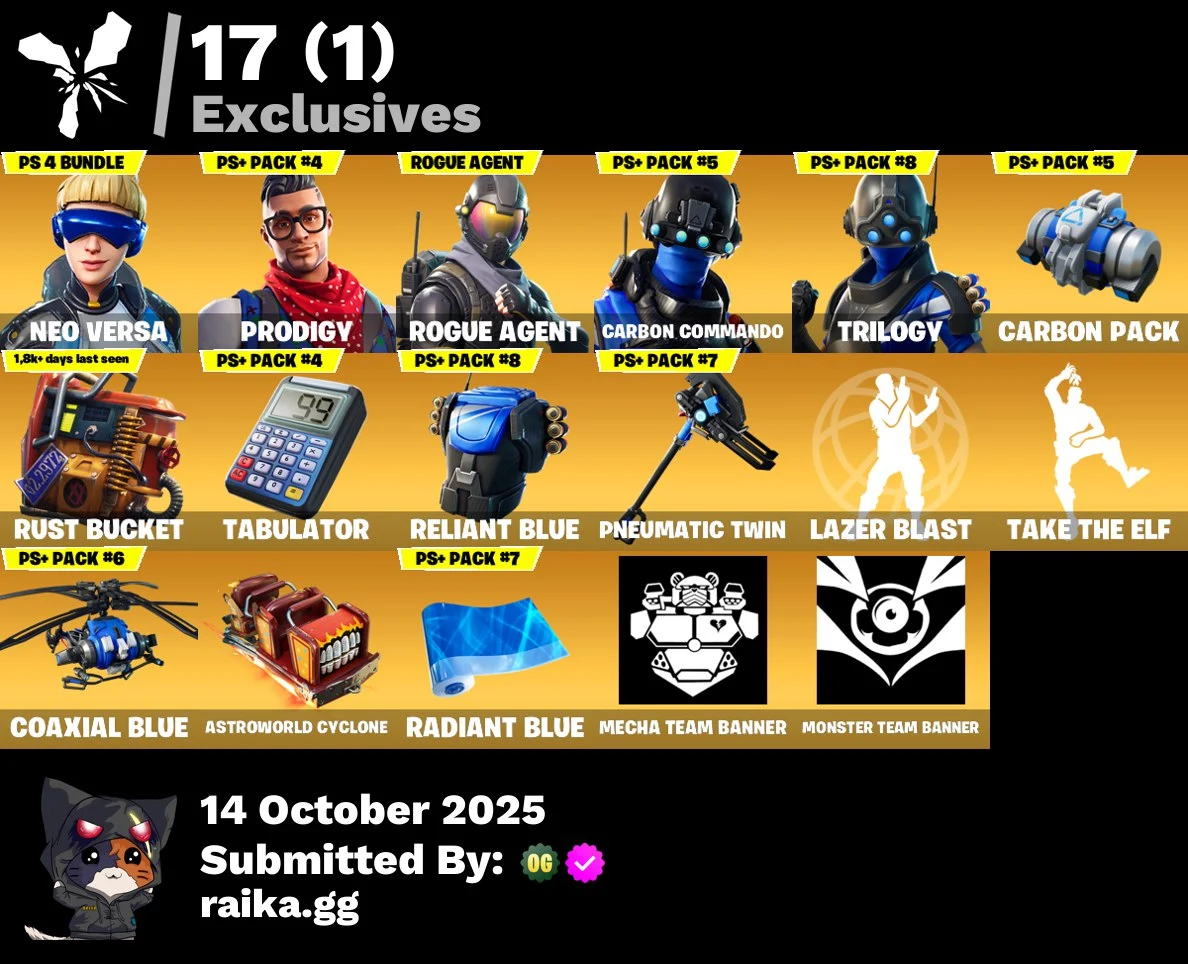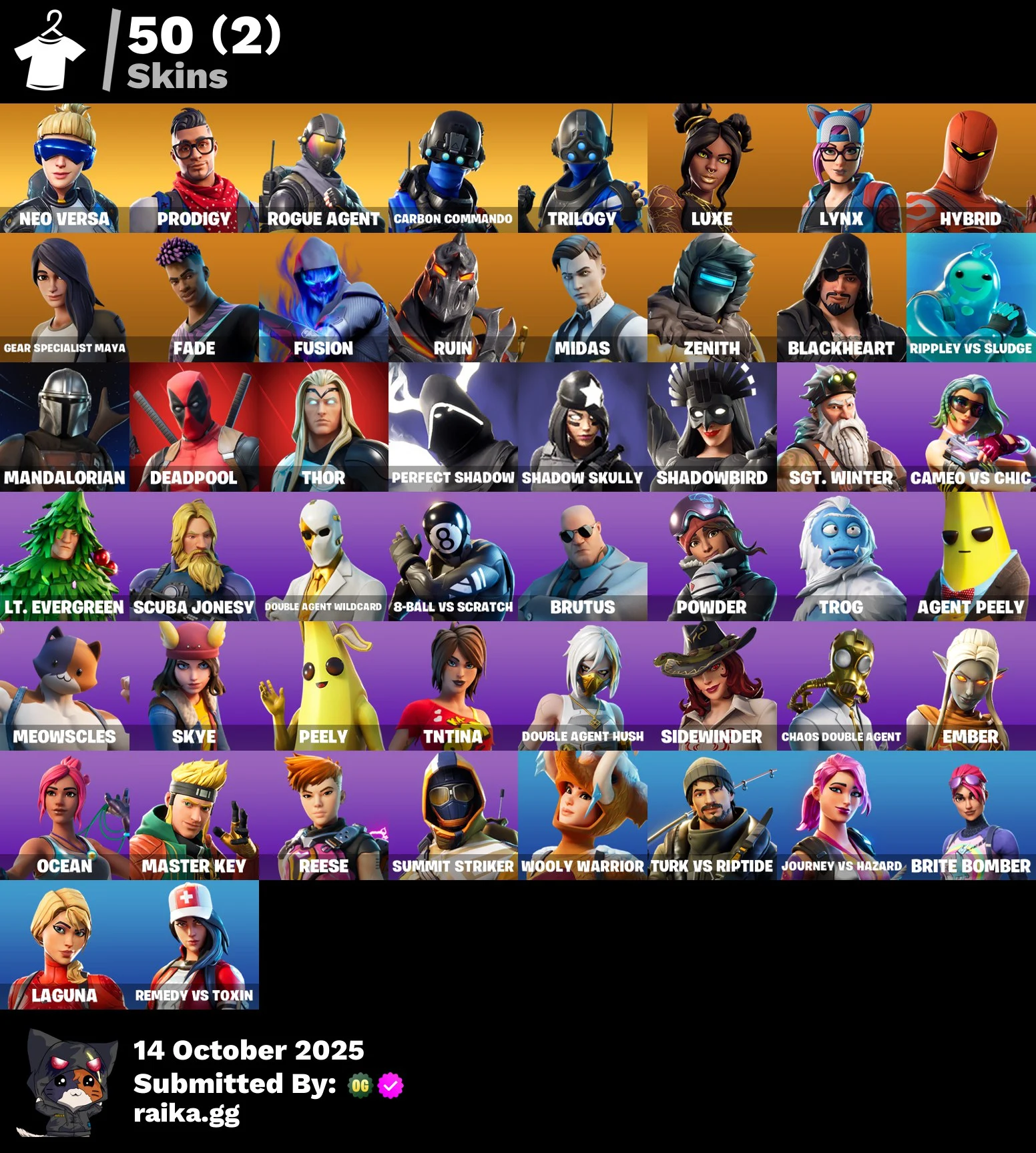 PC/PSN/Xbox/Nintendo 16 skins | The Reaper | Elite Agent | Rogue Agent | Dark Voyager | Carbide | Polar Peely | Skull Trooper | Moonwalker | Rust Lord | The Ace | 400 VB
