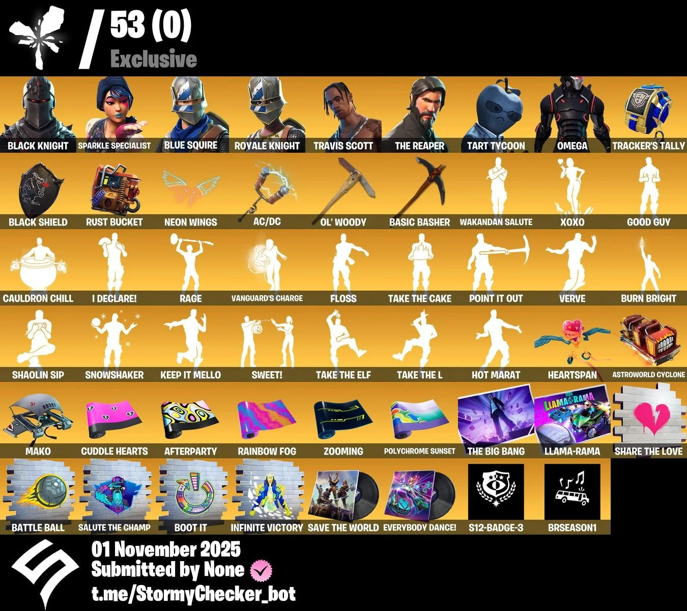 [PC/XBL/PSN] | 211 Skins | Black Knight | Sparkle Specialist | Blue Squire | Royale Knight | Travis Scott | AC/DC | Ol' Woody | Basic Basher | S12-Badge-3 | BRSeason1 | 700 VB
