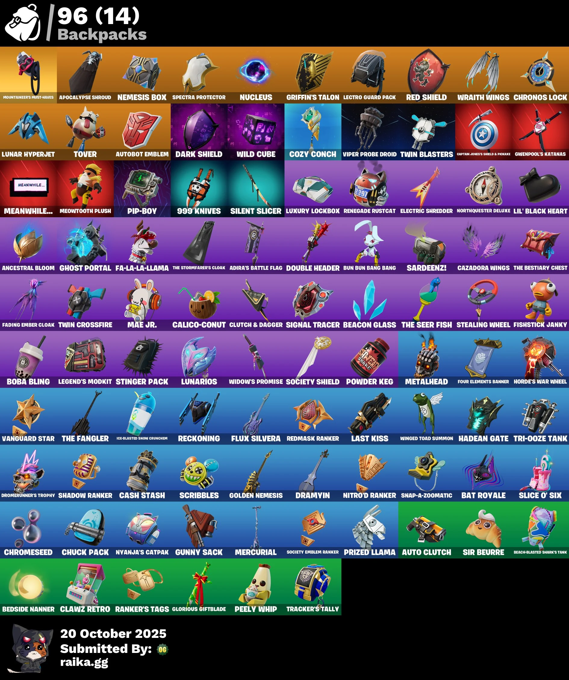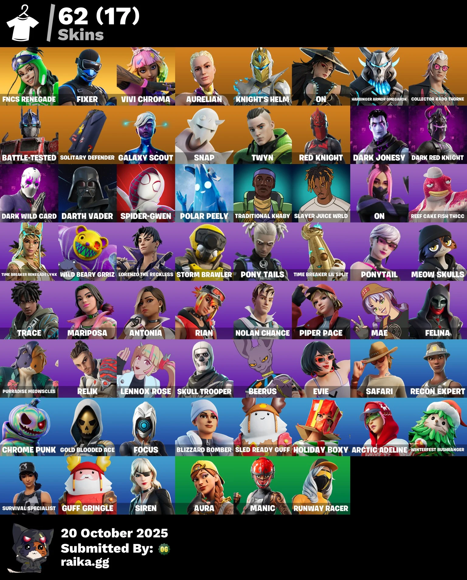 [PC/XBOX] 62 skins | Aura | Siren | Star Wand | Get Griddy | FNCS Renegade | Ice Breaker | Fixer | Vivi Chroma	mssh787