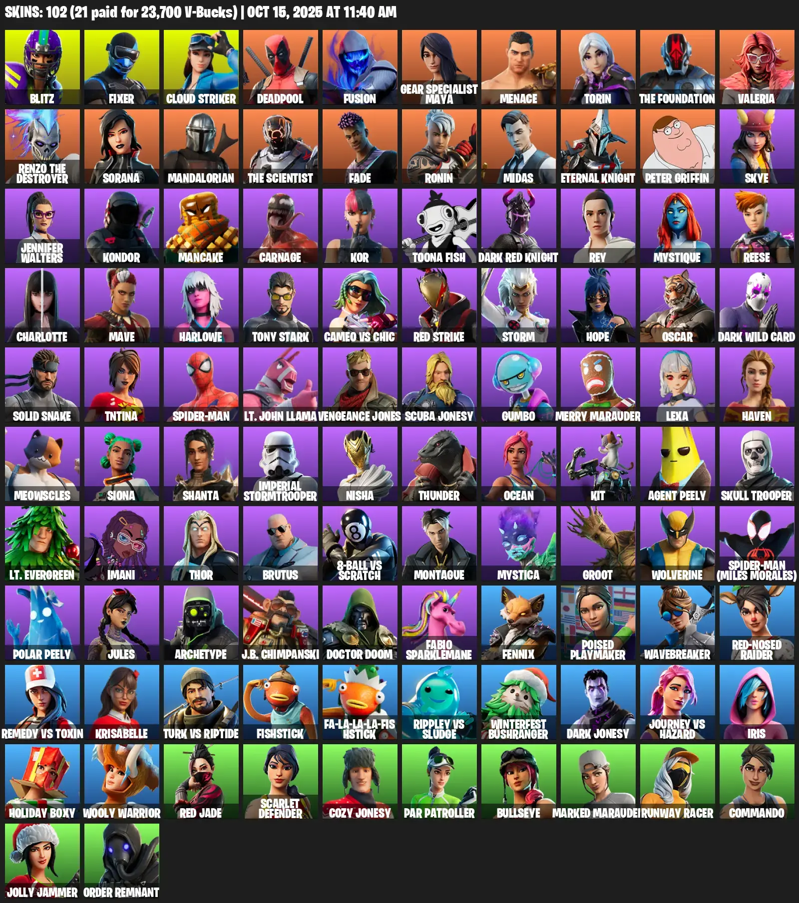 [PC/XBOX] | 102 skins | Reaper Axe | Blitz | Fixer | Cloud Striker | Deadpool | Fusion | Gear Specialist Maya | Menace | Torin | #MZT2456 | #MBFN