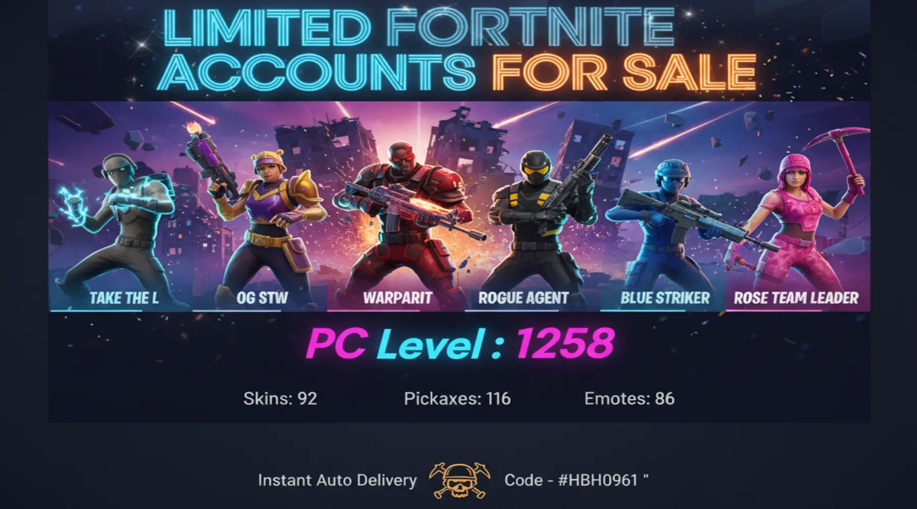 [PC/XBOX] | 92 skins | 1380 V-bucks | Take The L | OG STW | Warpaint | Rogue Agent | Blue Striker | Rose Team Leader | #HBH0961 | #MBFN
