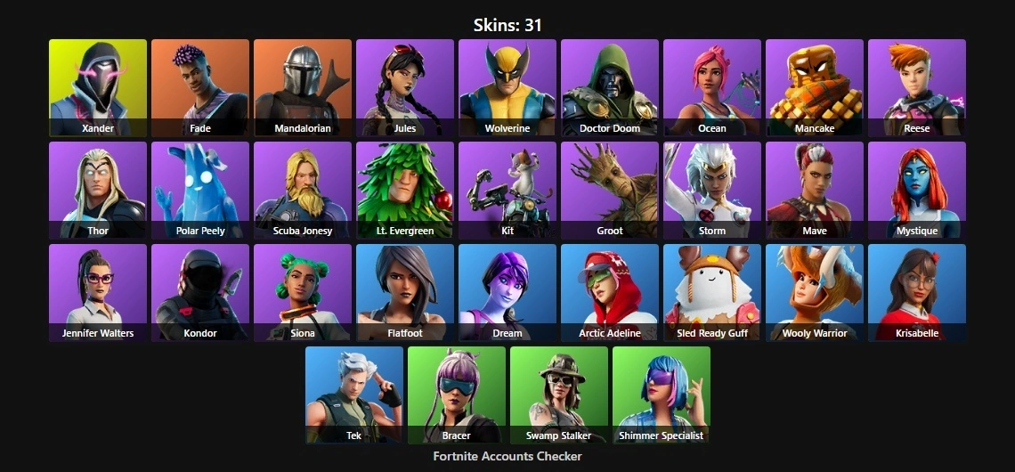 PC/XBOX/PSN 31 Skins⚡ | Xander | Fade | Mandalorian | Jules | Wolverine | Doctor Doom | Ocean | Mancake | Reese | Thor | Polar Peely | Scuba Jonesy