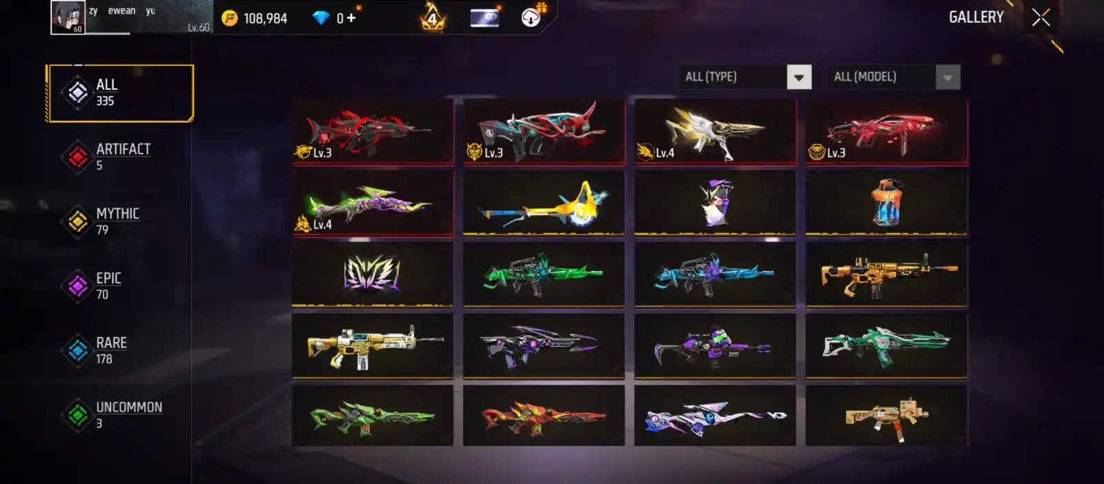 V24|LVL60|293COSTUME(18MYTHIC)|335WEAPON(5EVO+79MYTHIC)|PLATINUMDIVINITY-MP5LVL4|GREENFLAMEDRACO-M1014LVL4|MEGALODONALPHA-SCARLVL3