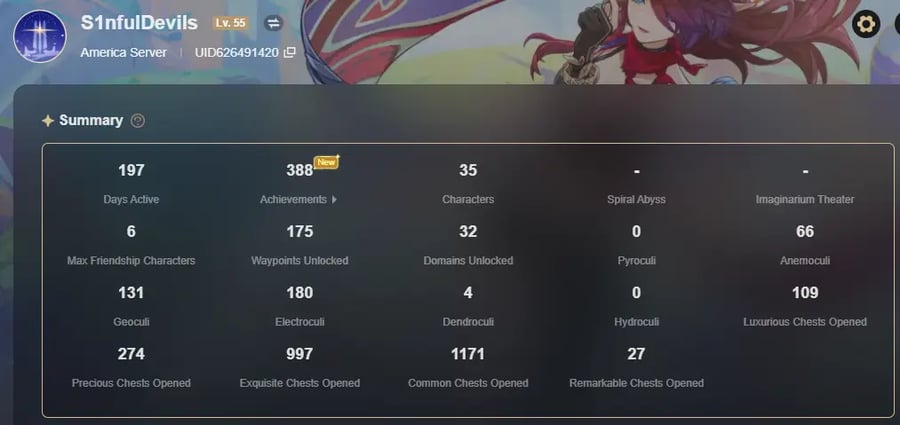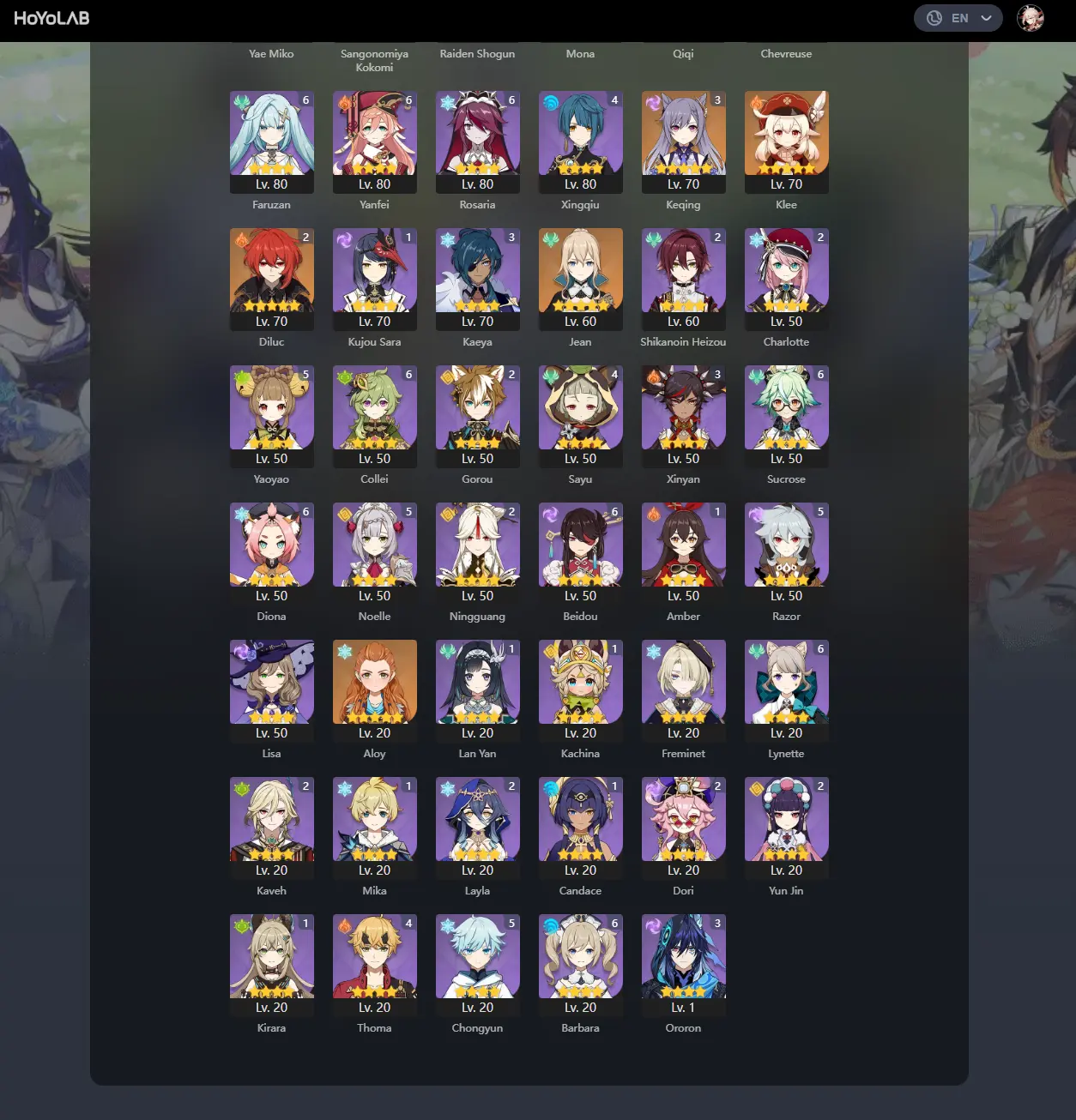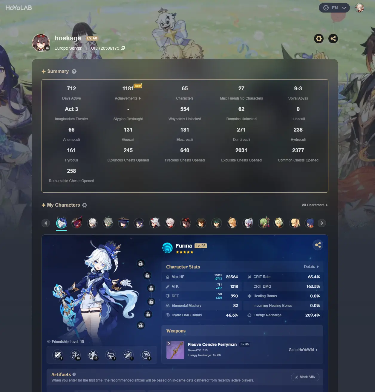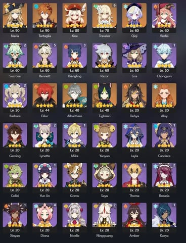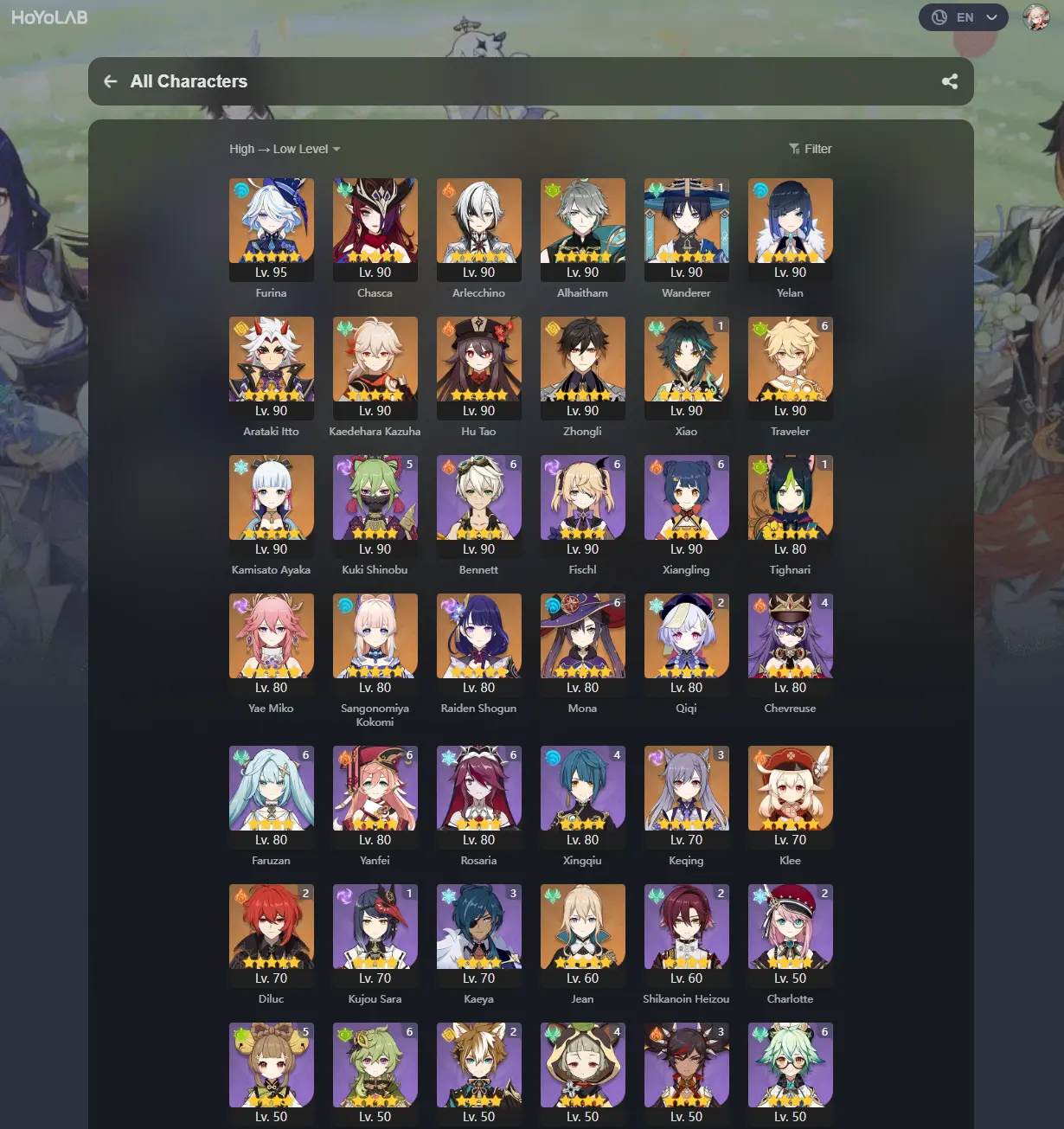 [EU] AR 60 + Chasca | Sign + Tighnari | Sign + Ayaka | Sign + Furina + Arlecchino + Alhaitham + Wanderer + Yelan + Kazuha + Zhongli + Kokomi + Xiao + Itto + Hu Tao