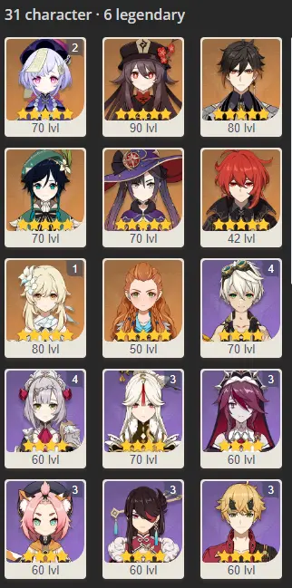 [EU HANDLEVELED] AR 55 | Heroes 31 (Qiqi C2, Hu Tao C0, Zhongli C0, Venti C0, Mona C0)+Full Access