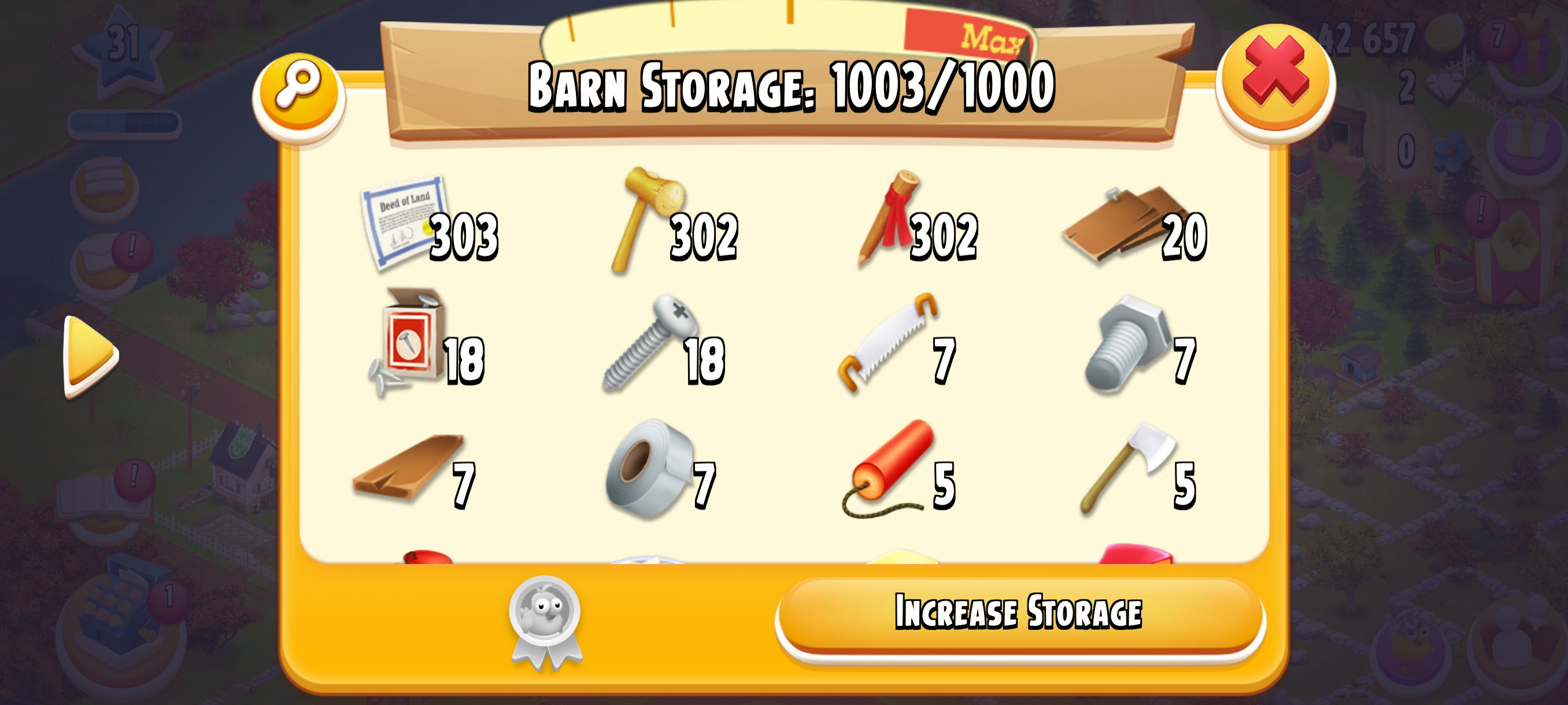 🏆 LEVEL 31 🏚️ 1000 Barn Storage🛠️ Fully Filled With Tools🌍 Main Land Open🌾 500 Silo Storage💰 42k+ Coins & 💎 2 Diamonds⚡ Instant Delivery